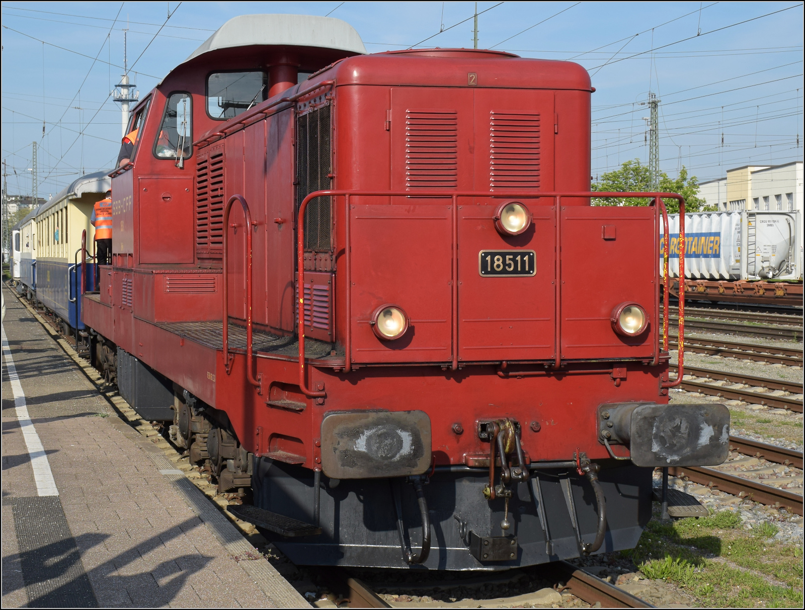 Dampftage Huttwil 2024 mit Diesel, Elektro und Dampfgiganten. Bm 6/6 18505 mit den hauseigenen Salonwagen in Häusernmoos. Oktober 2024.