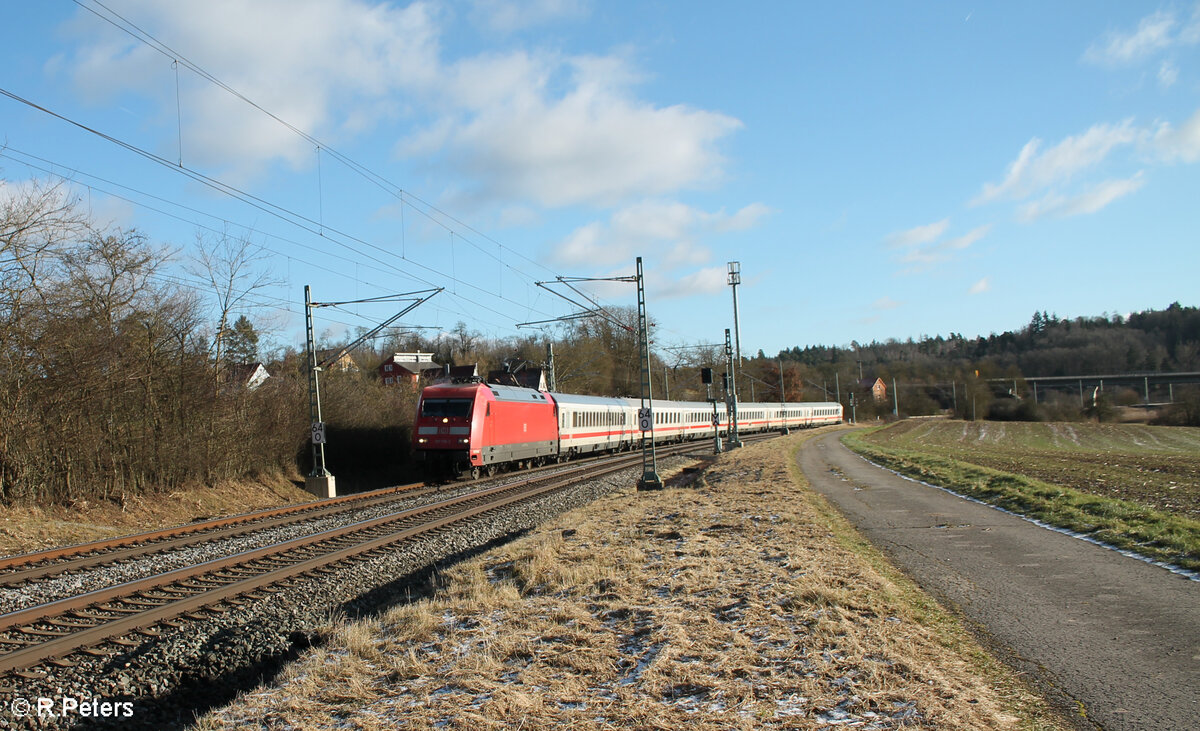 101 088-3 "DEVK" zieht den IC2083/85 Hamburg - Obersdorf/Berchtesgarden bei Mitteldachstetten. 12.01.25