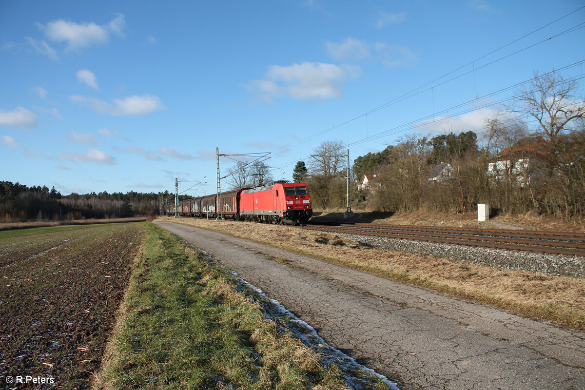 185 266-4 zieht ein gemischten Güterzug nacch Nürnberg bei Kesselfeld. 12.01.25