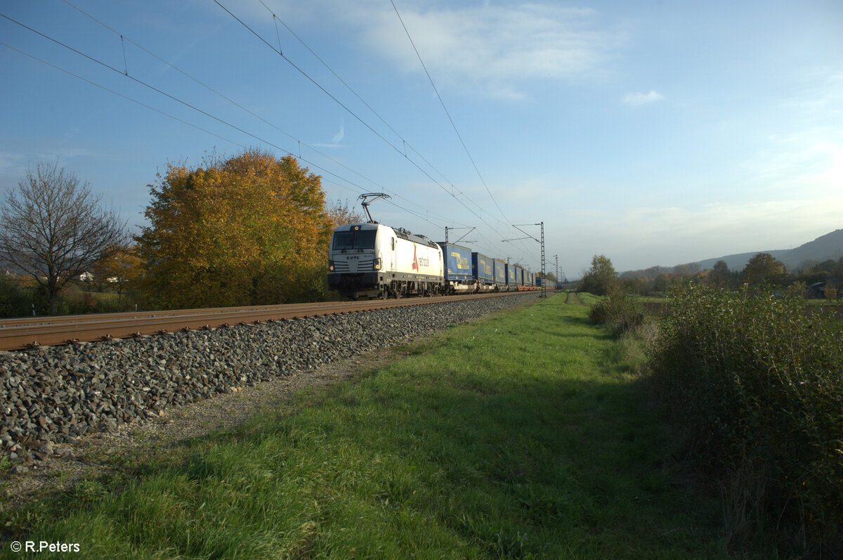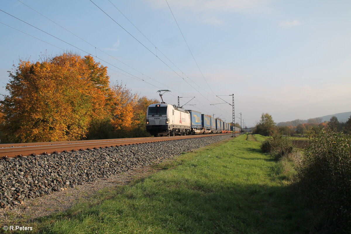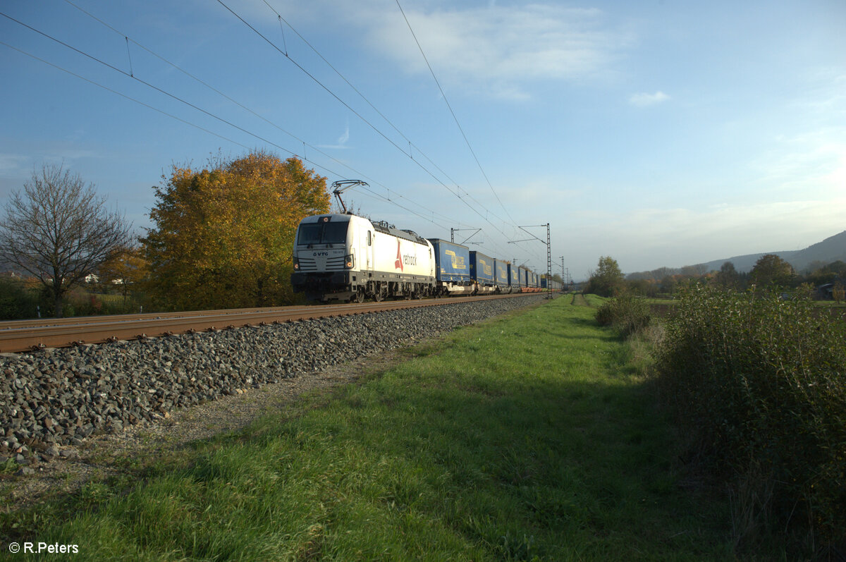 193 815-8 "Kätchen" zieht bei Thüngersheim mit einem WEchselpritschen LKW-Walter in Richtung Norden. 27.10.24