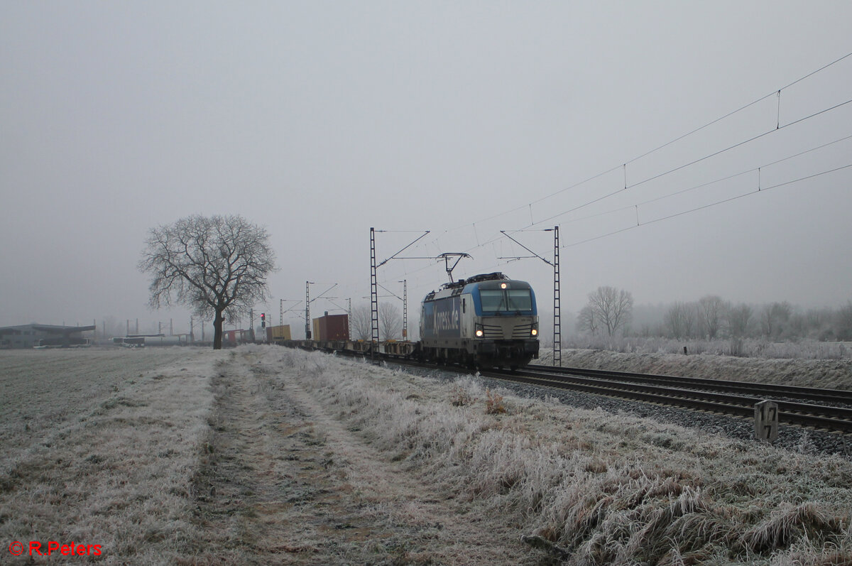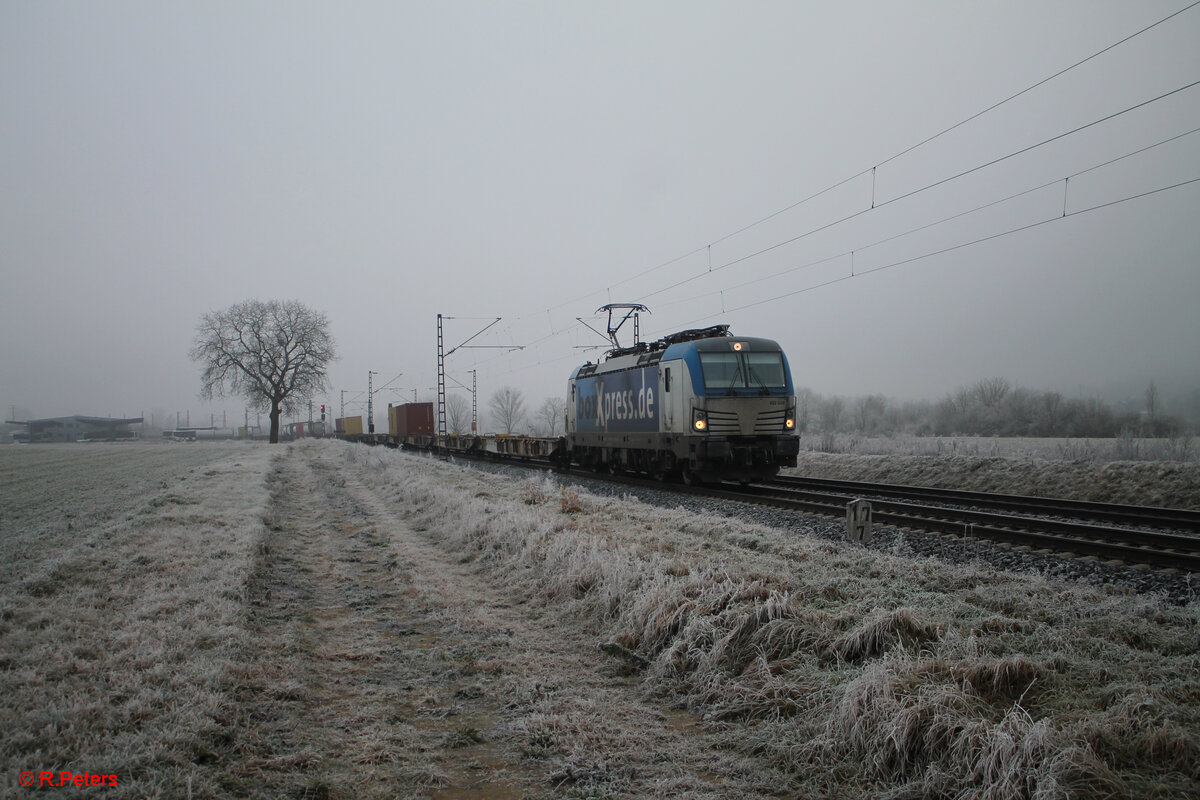 193 538 zieht ein Containerzug in Richtung Norden bei Retzbach - Zellingen. 28.12.24