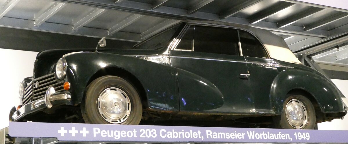 (241'736) - Peugeot Cabriolet von 1949 am 22. Oktober 2022 in Luzern, Verkehrshaus