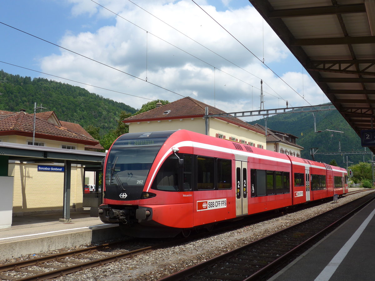 (181'056) - SBB-Pendelzug - Nr. 262 - am 12. Juni 2017 im Bahnhof Sonceboz-Sombeval