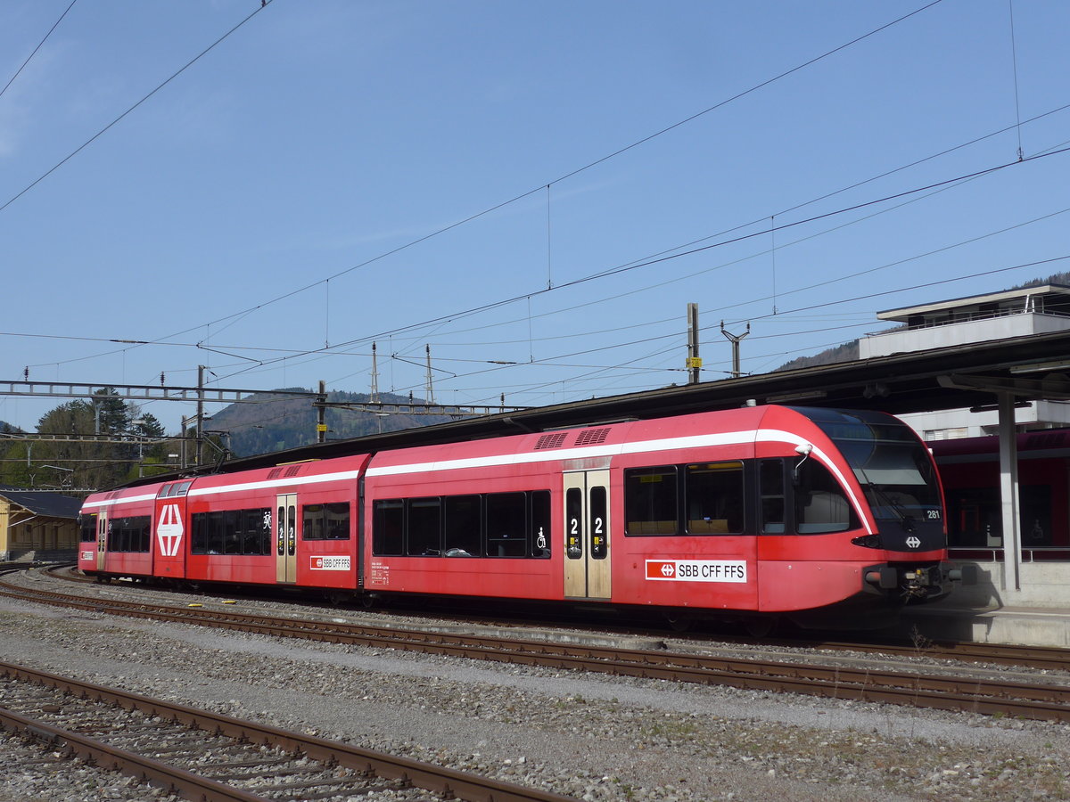 (203'877) - SBB-Pendelzug - Nr. 281 - am 22. April 2019 im Bahnhof Moutier