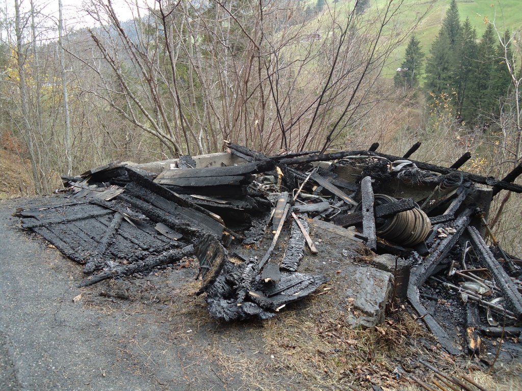 (130'984) - AFA-Haltestelle Bönigen am 15. November 2010; der abgebrannte Schober
