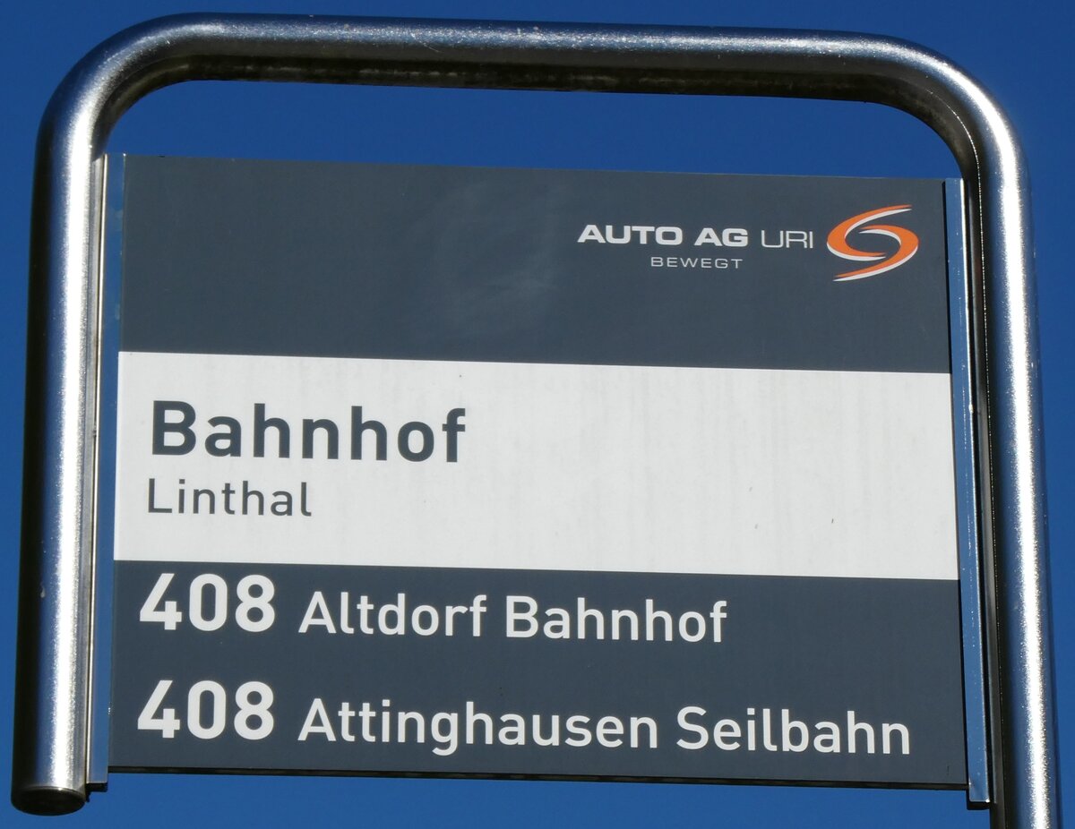 (281'051) - AUTOBETRIEB SERNFTAL-Haltestellenschild - Linthal, Bahnhof - am 7. Oktober 2025
