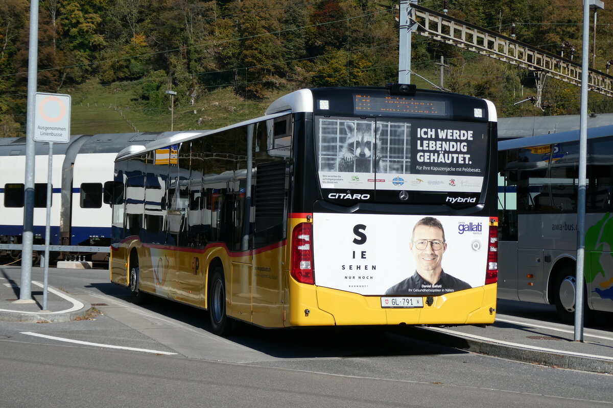 (281'656) - Niederer, Filzbach - Nr. 4/GL 791/PID 11'357 - Mercedes am 18. Oktober 2025 beim Bahnhof Ziegelbrücke