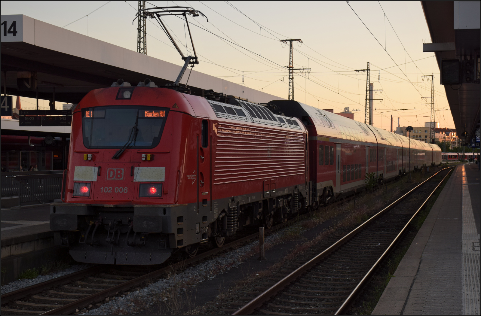 Skodalok 102 006 mit den Skoda-Dostos nach Ankunft in Nürnberg. Juni 2025.