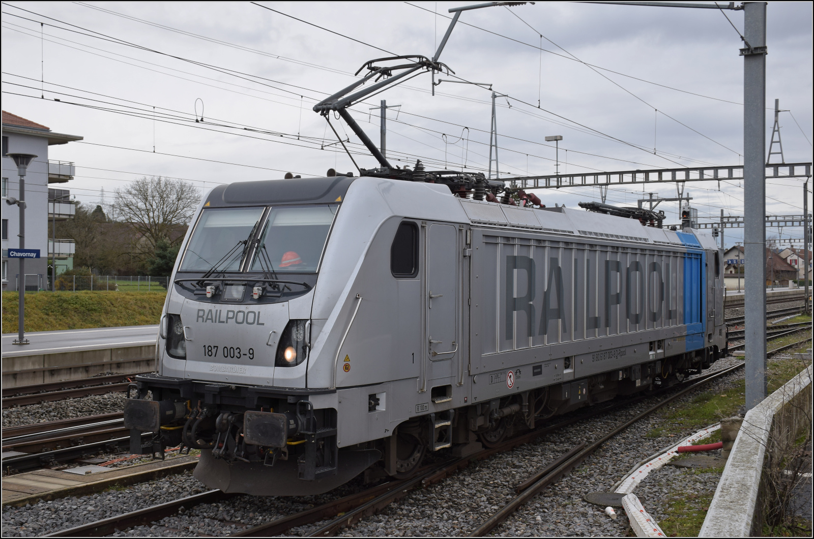 187 003 macht sich in Chavornay für die nächste Fahrt parat.