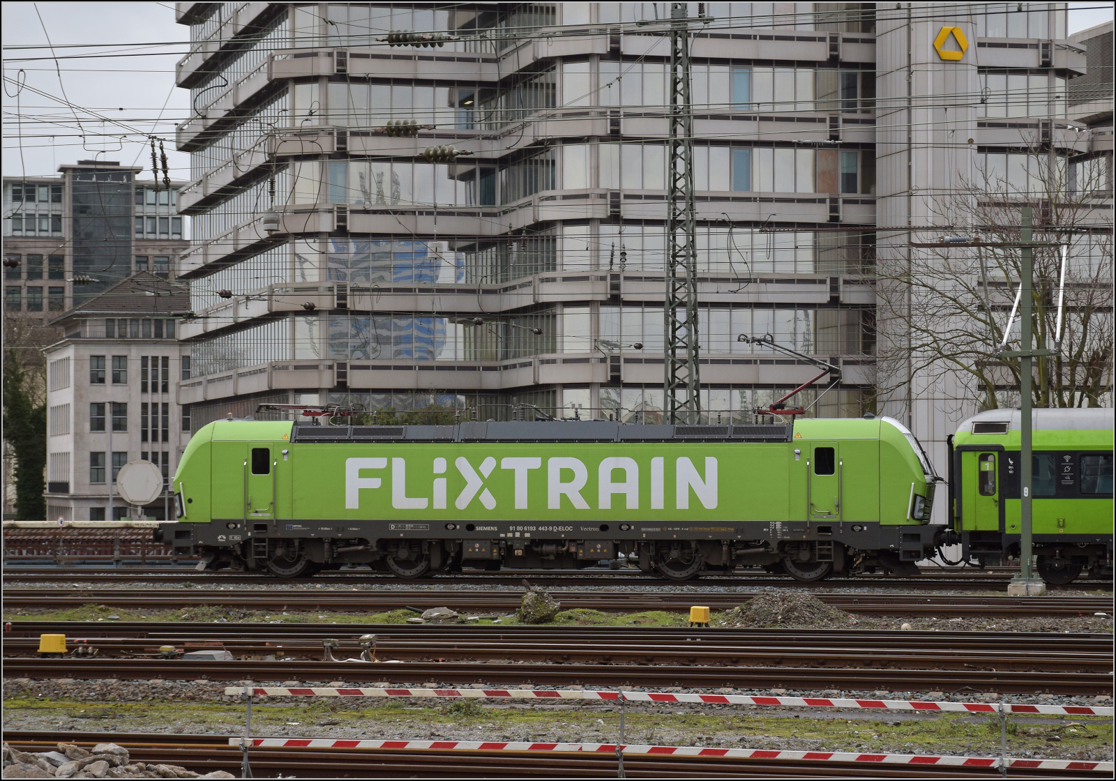 193 443 von ELL fährt für Flixtrain. Duisburg, Februar 2026.