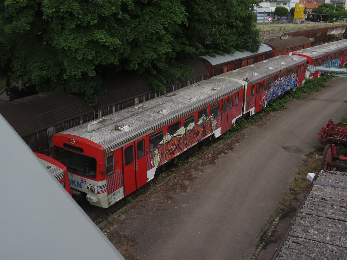 2x VT2E/VTA (ex. A.V.G. Ascherslebener Verkehrsgesellschaft und ex.AKN) steht neben den Bahnhof Nördlingen in der Abstellung. 30.Mai.2025