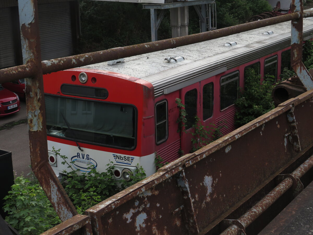 VT2E/VTA (ex. A.V.G. Ascherslebener Verkehrsgesellschaft) steht neben den Bahnhof Nördlingen in der Abstellung. 30.Mai.2025