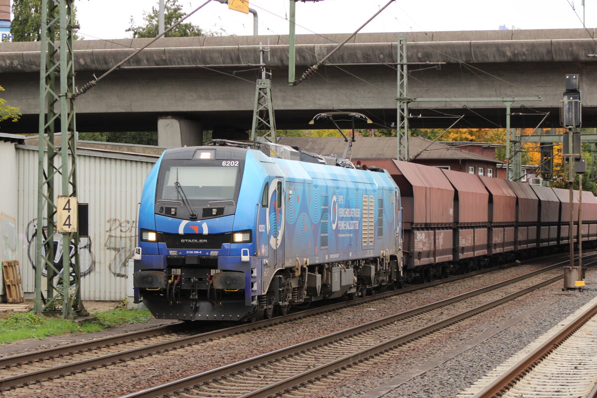 BR 159 202 (20-02) von ELP / Vermietet an : Heavy Haul Power International (F=ma) mit Schüttgutwagen durch HH-Harburg. 29.06.2025