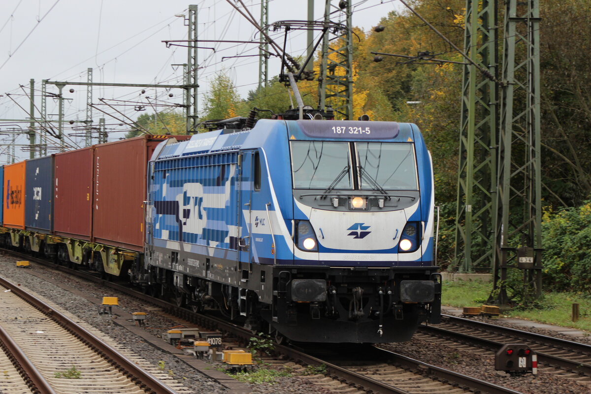 BR 187 321-5 mit Containern durch HH-Harburg Richtung Hafen. 9.Oktober 2025