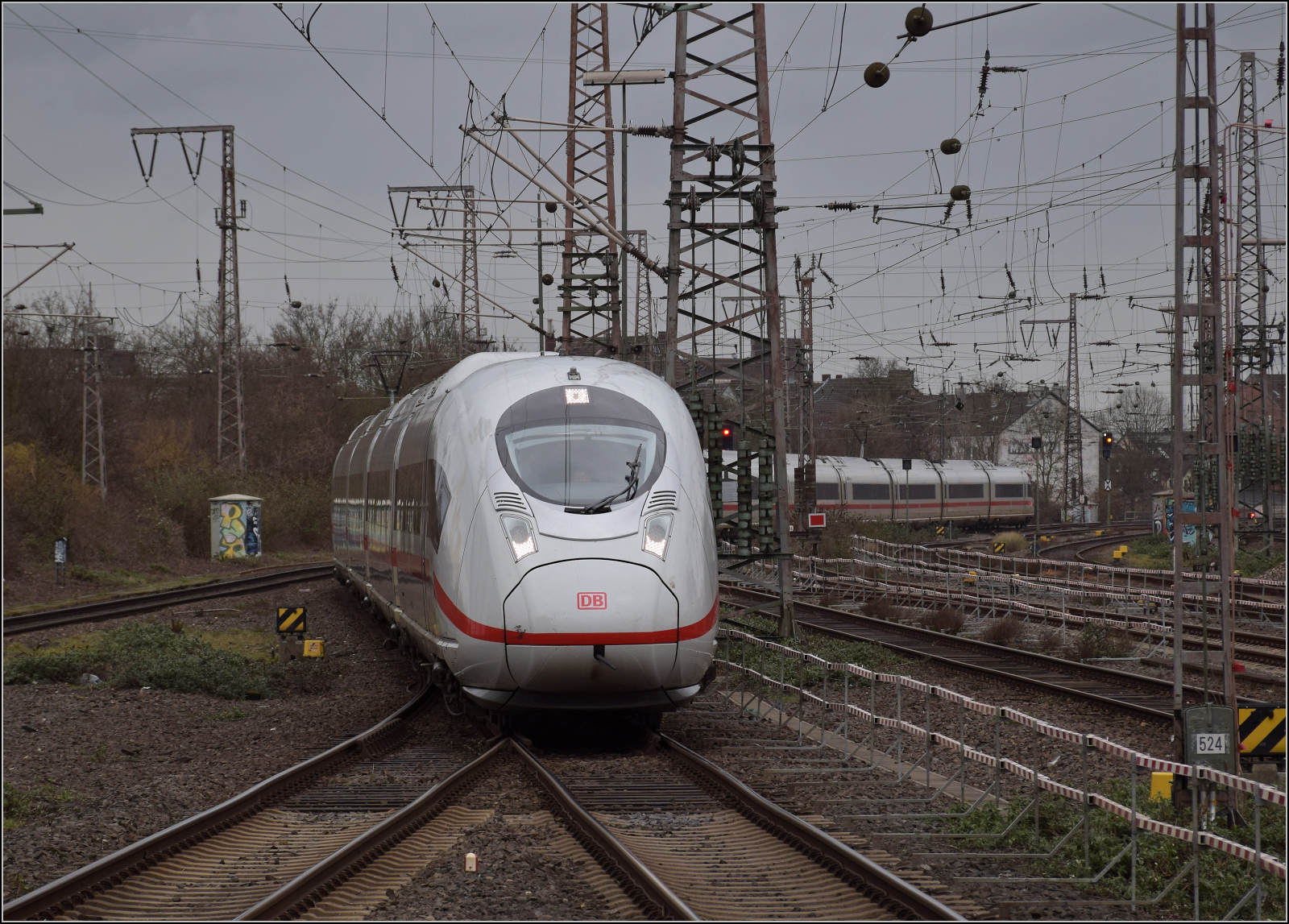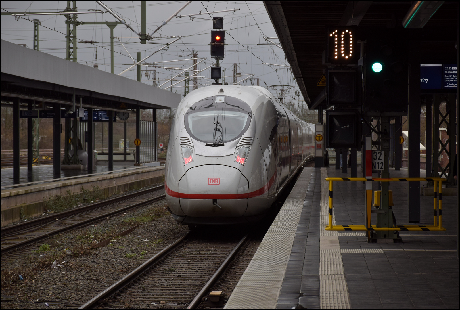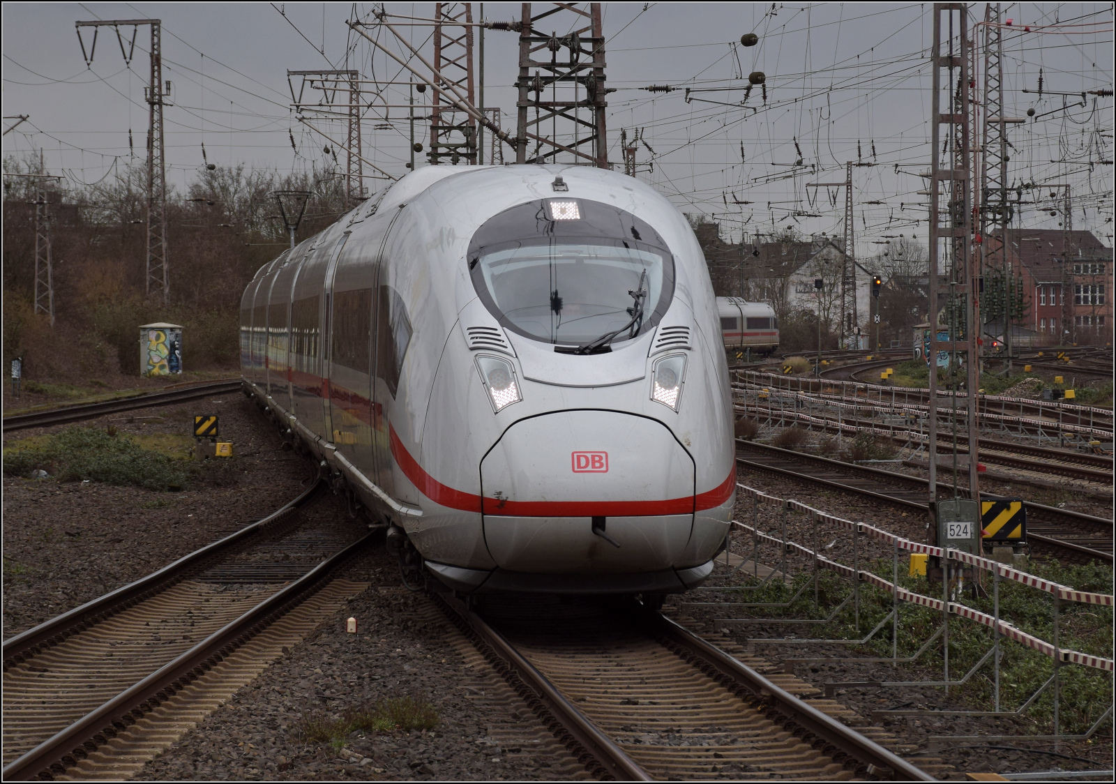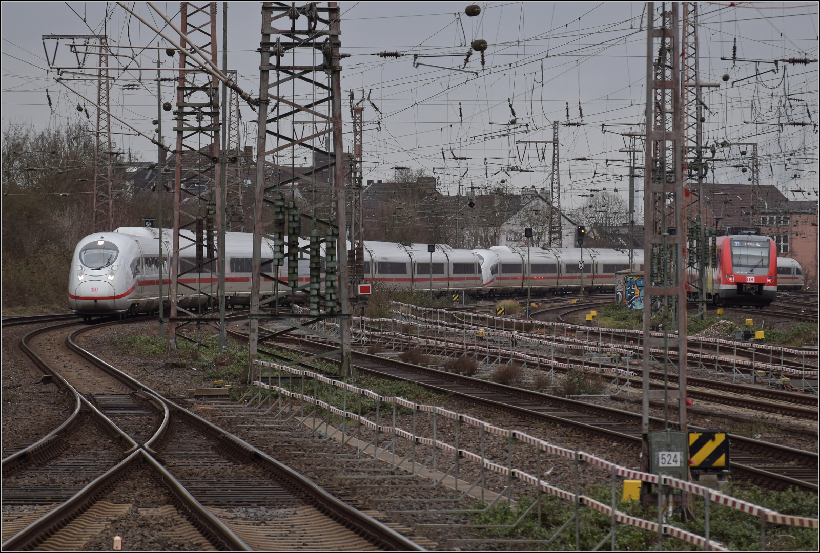 408 037 brachte mich nach Duisburg. Unterwegs in Köln wurde der hintere Zugteil nicht planmäßig abgekoppelt. Duisburg, Februar 2026.