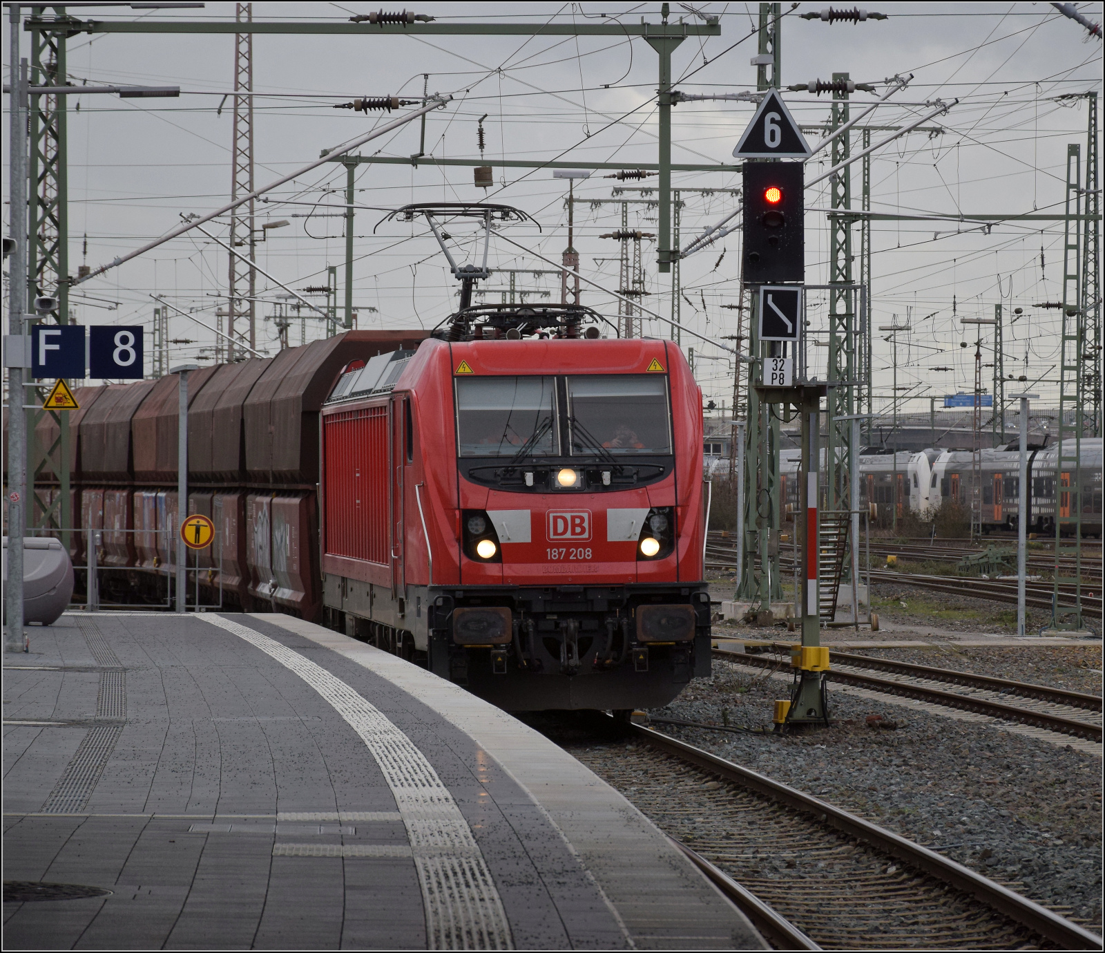 Aus 187 208 wird auf den Fotografen zurückgeschossen. Gruß zurück in die Lok. Duisburg, Februar 2026.