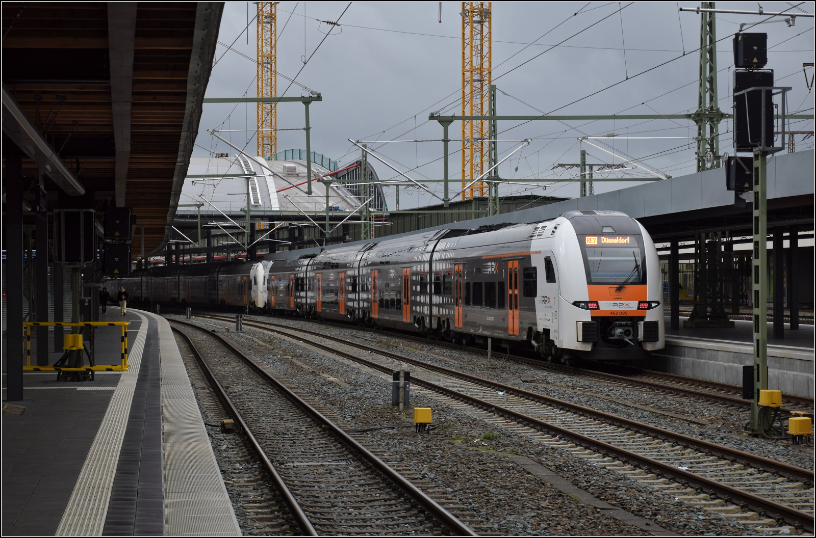 462 028 und 462 012 treffen als RE 5 nach Koblenz in Duisburg ein.