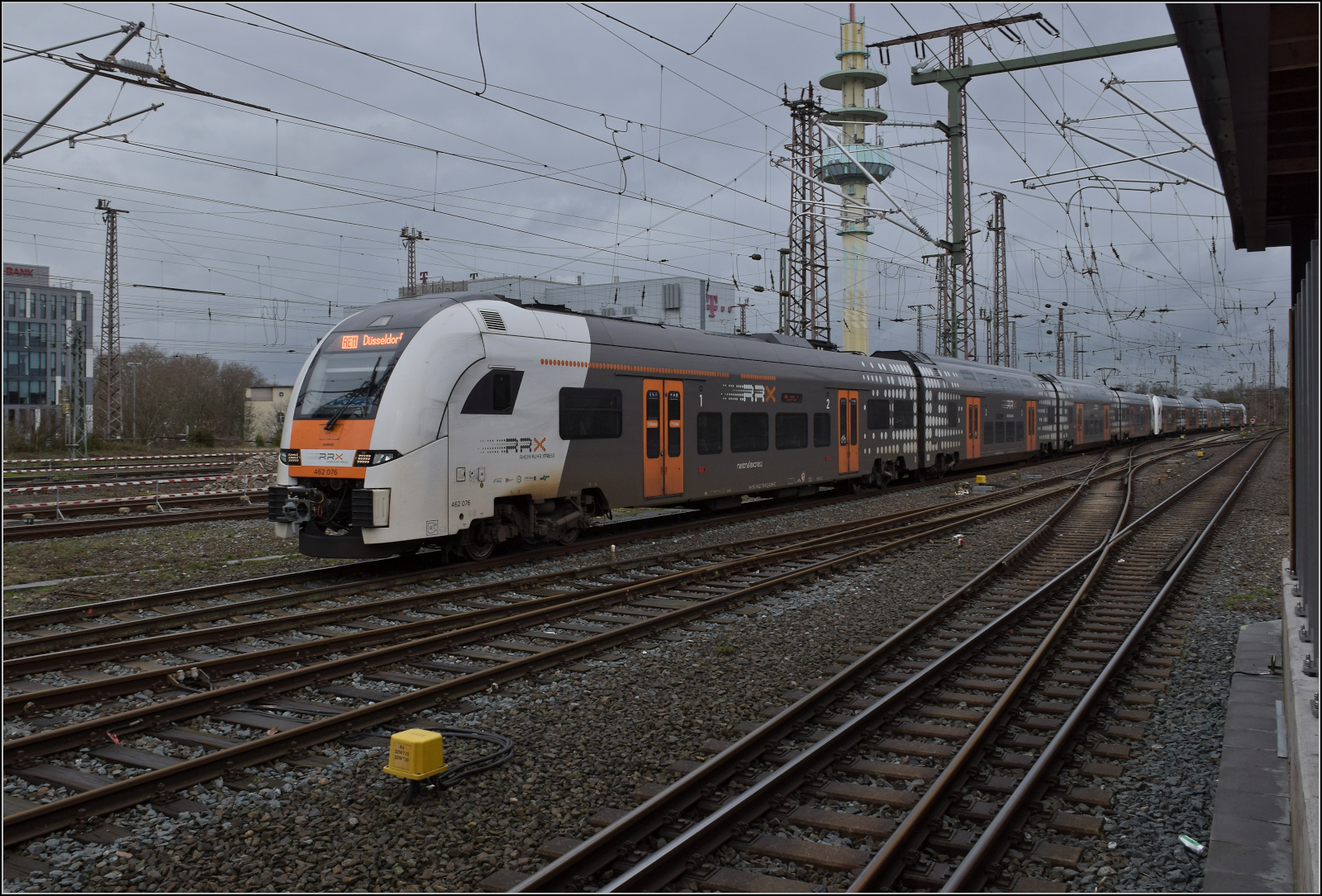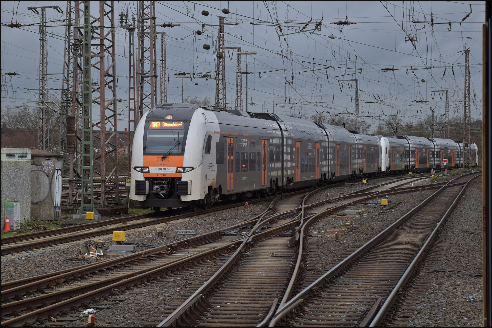 462 028 und 462 012 treffen als RE 5 nach Koblenz in Duisburg ein. Februar 2026.
