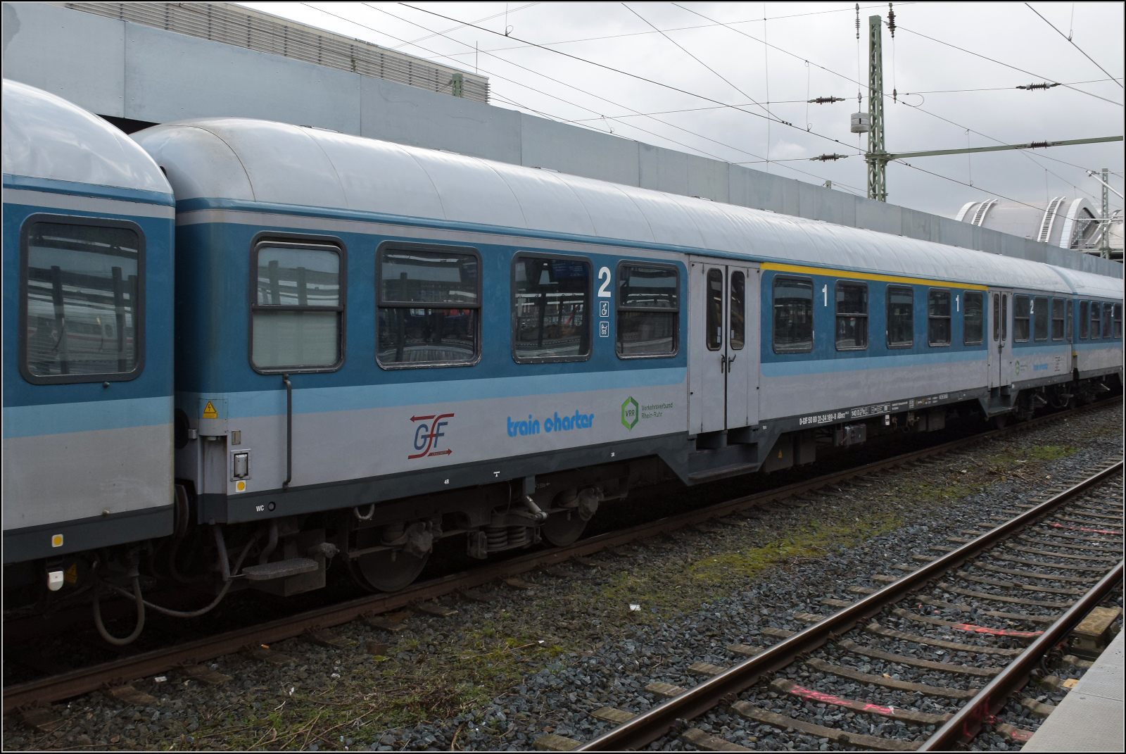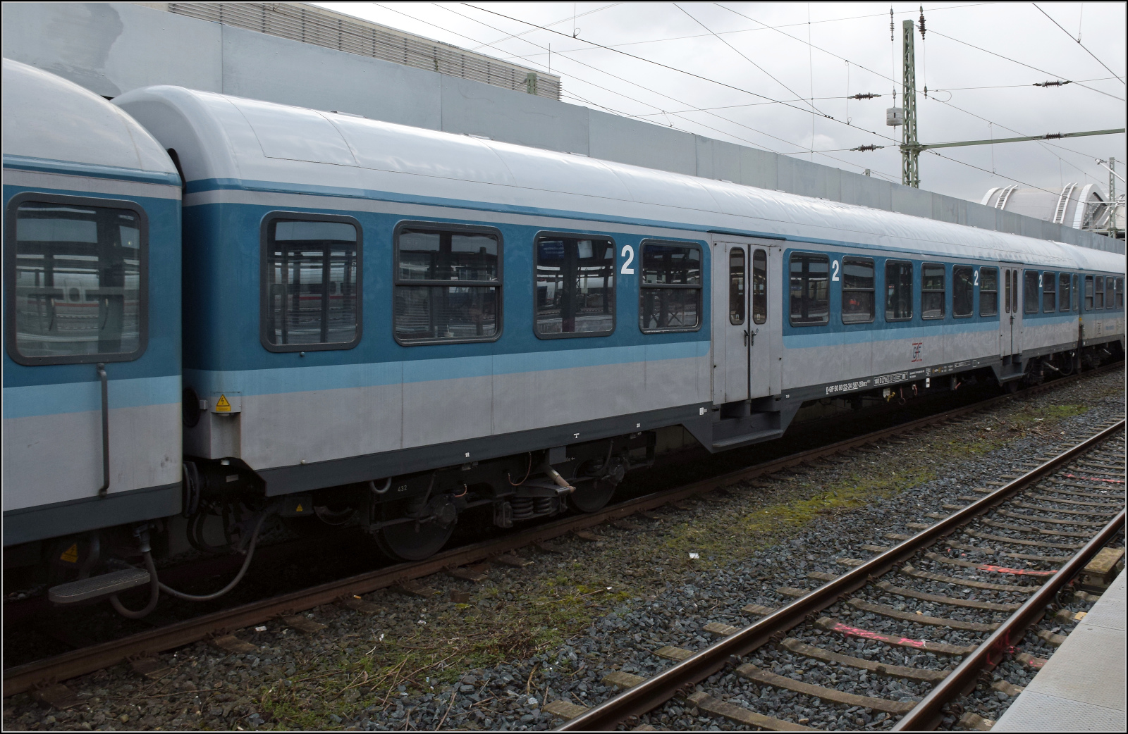 Blauer Silberling D-GfF 50 80 22-35 706-7 Bnrz im Sandwich zwischen 185 391 und 185 394. Duisburg, Februar 2026.