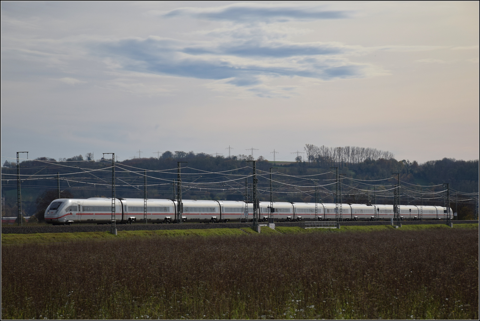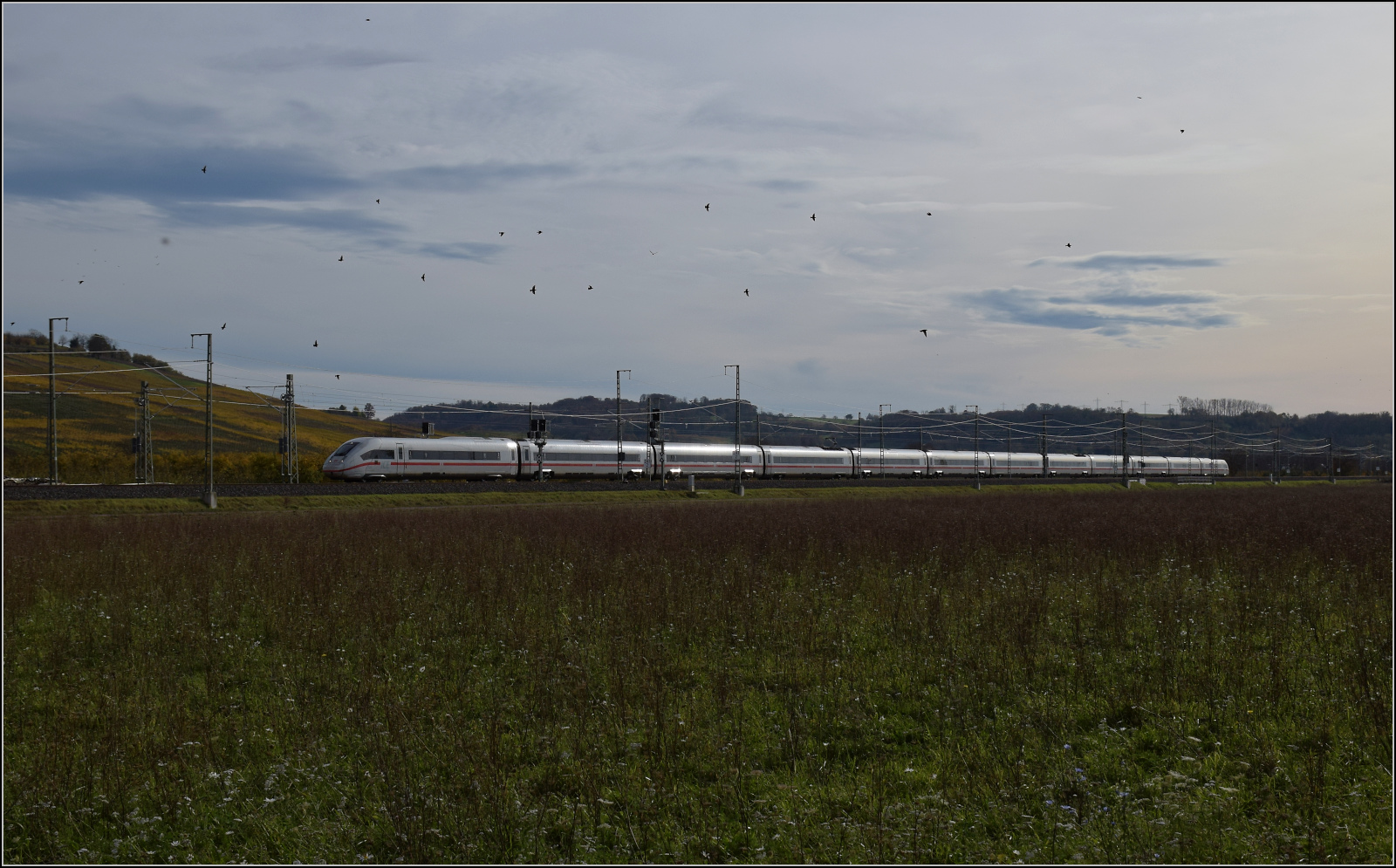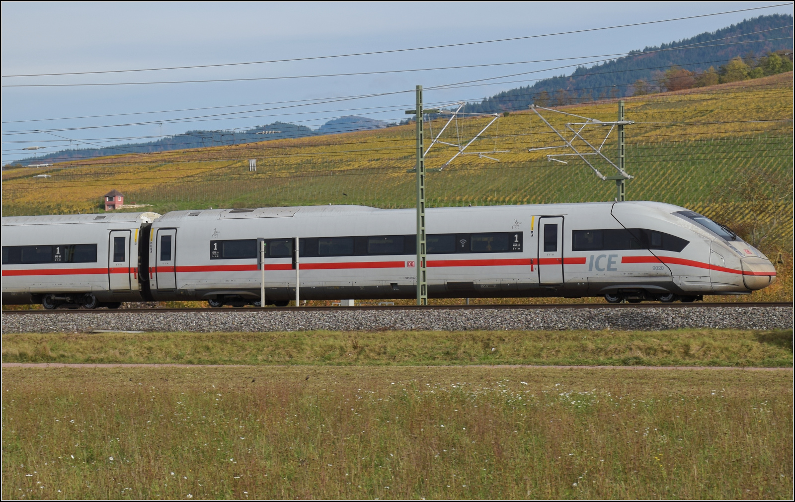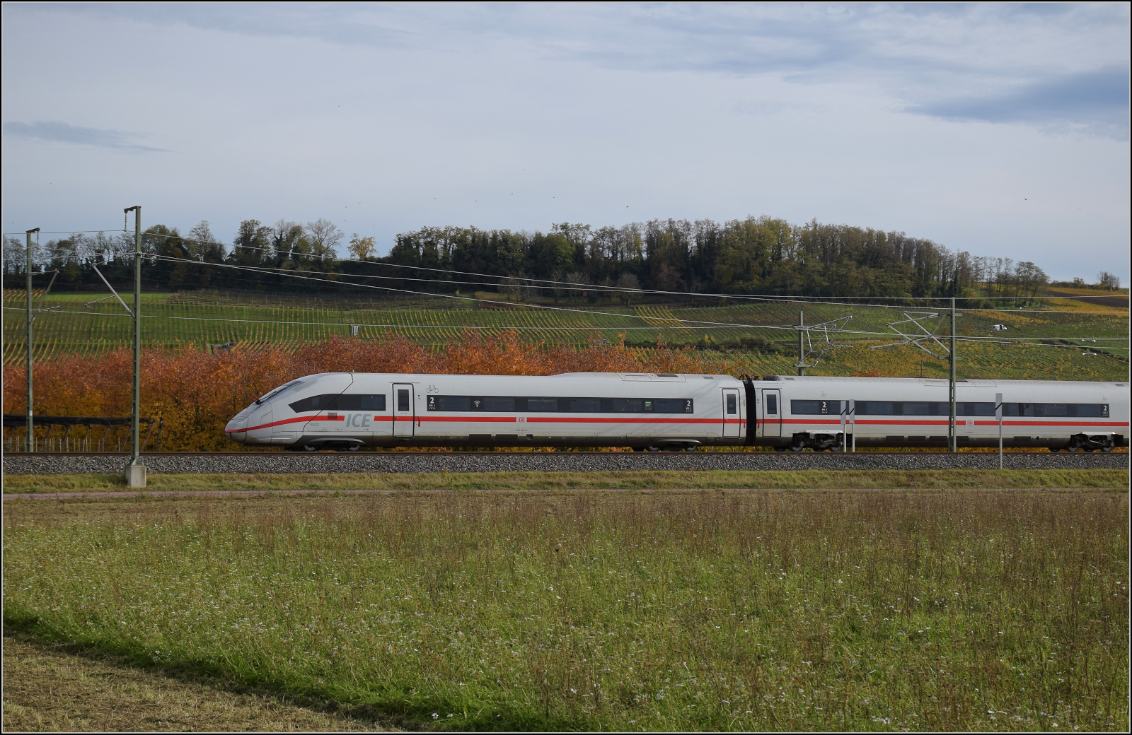 ICE 4 Triebzug 9028 bei Auggen. Oktober 2023.