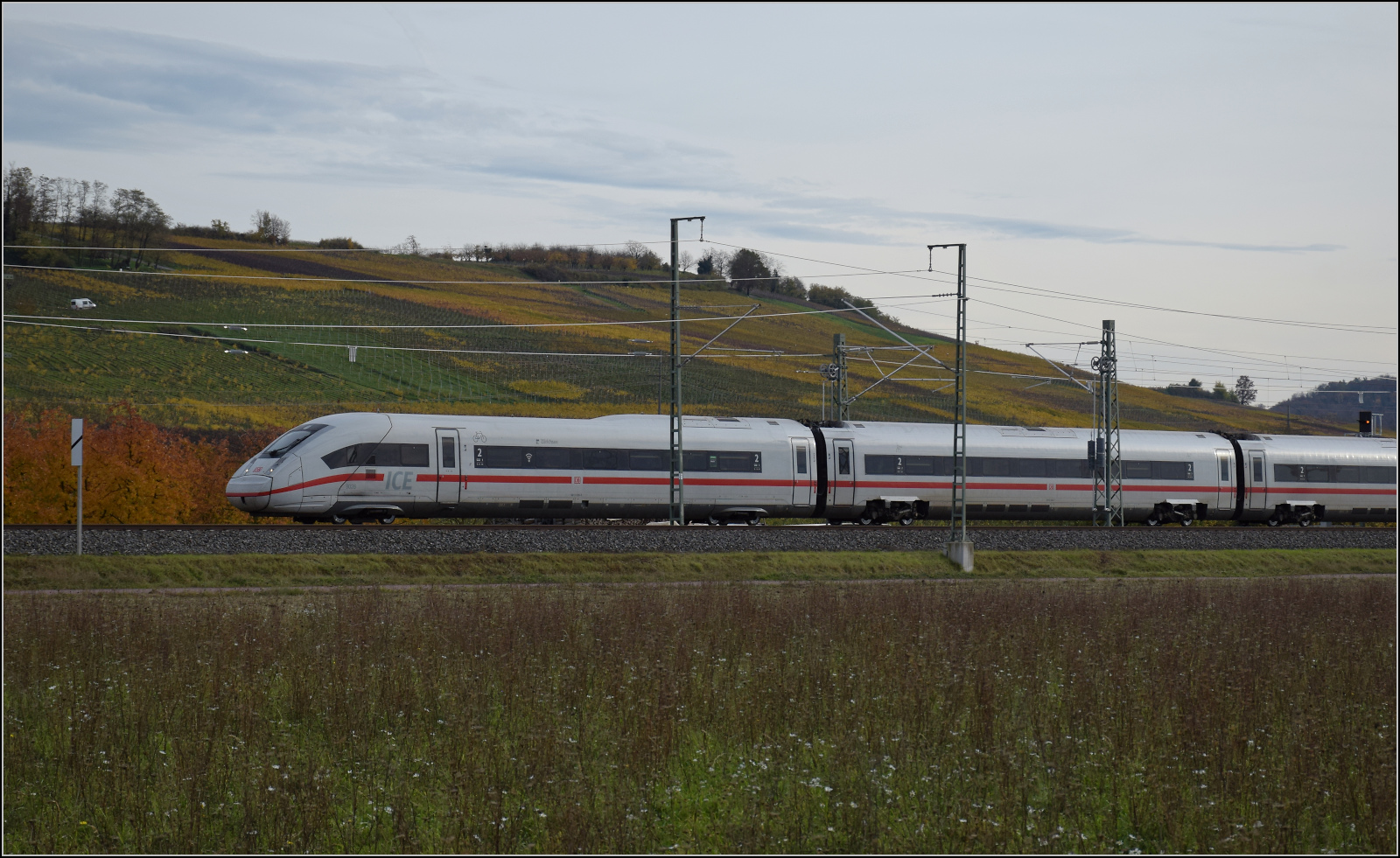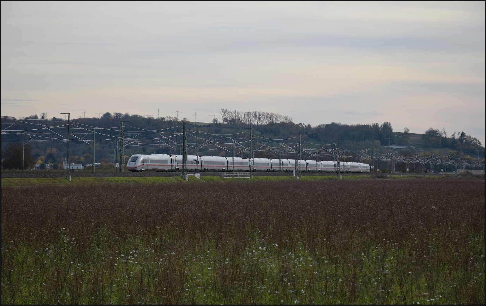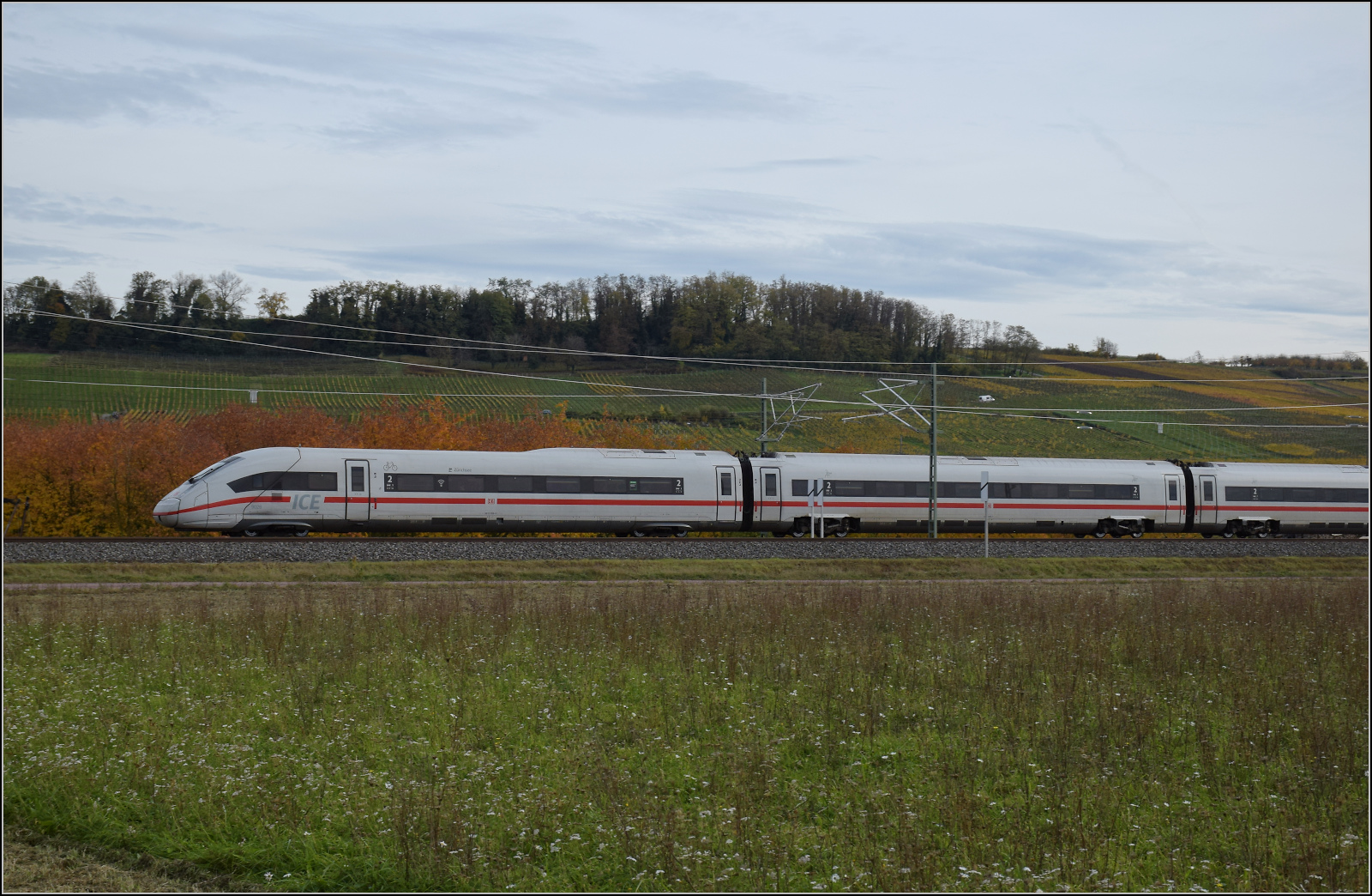 ICE 4 Triebzug 9032 bei Auggen. Dezember 2023.