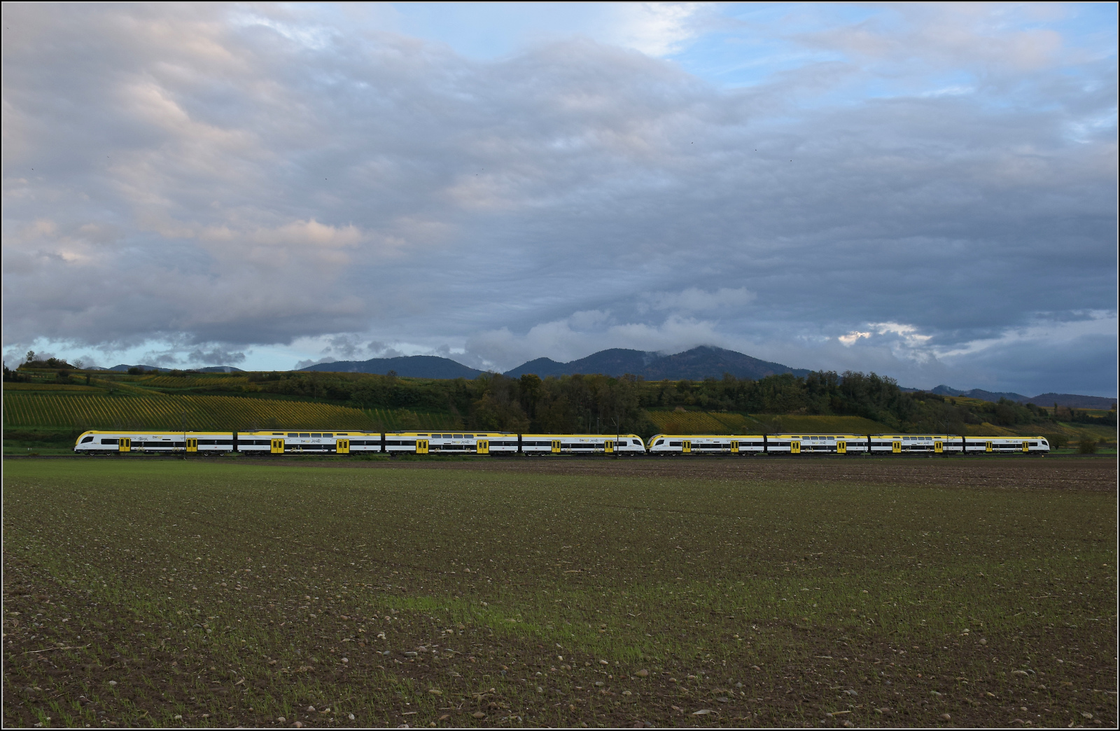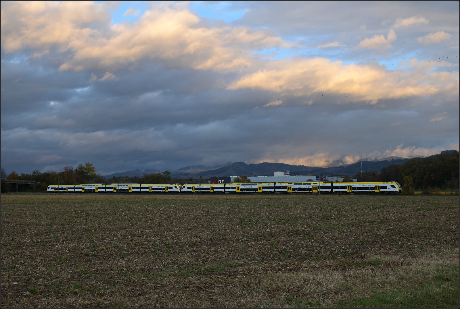 Ein unbekannt gebliebener Desiro HC der Baureihe 1462 bei Hügelheim. Oktober 2025.