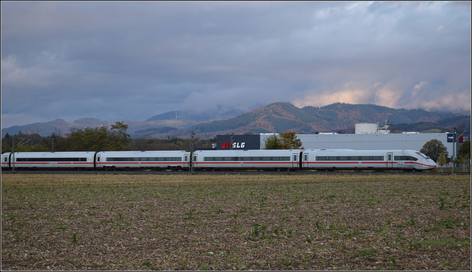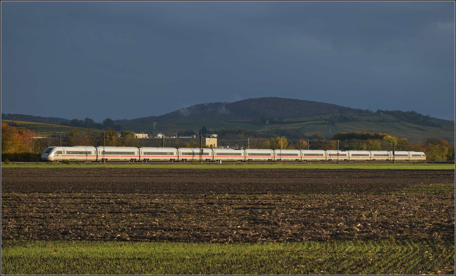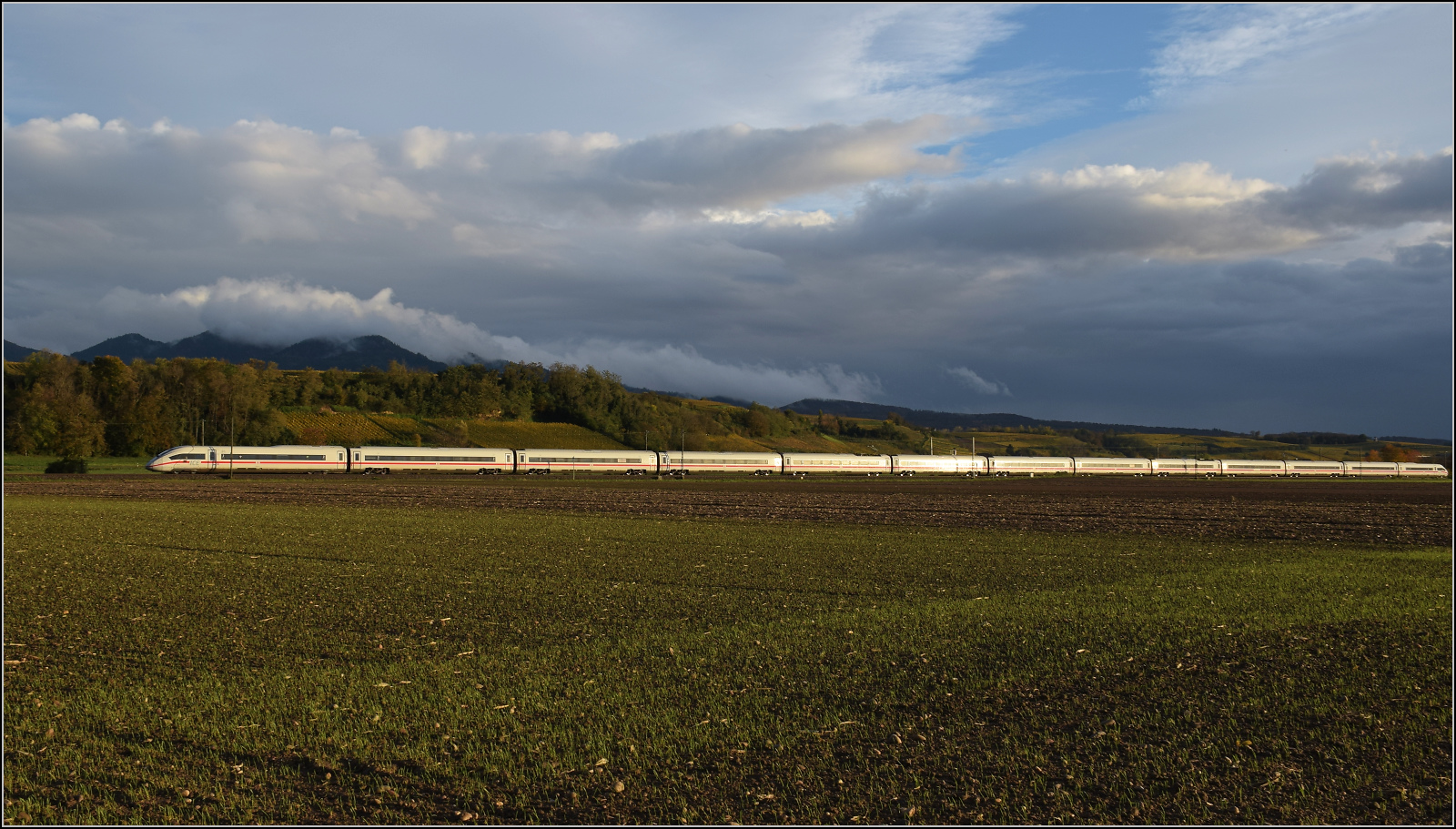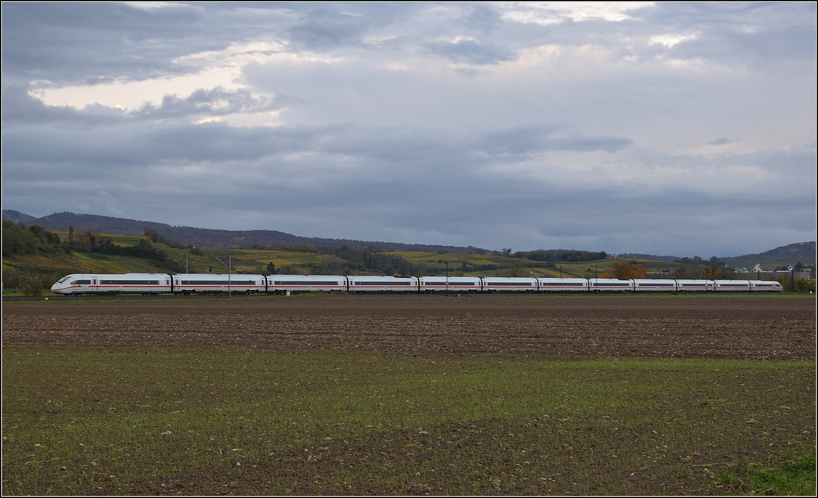Ein unbekannt gebliebender ICE 4 bei Hügelheim.