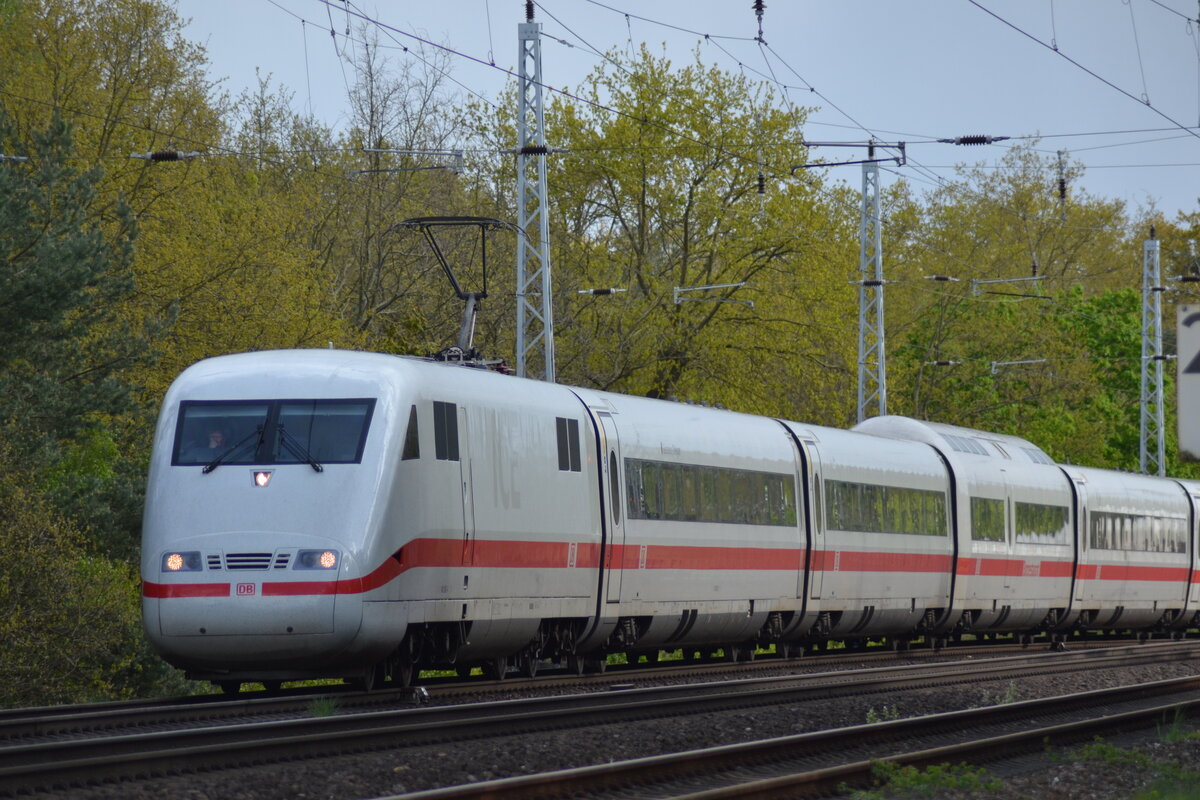 BR 411 009/509 ("Güstrow") als (ICE 1671 Hamburg-Altona -> Karlsruhe Hbf) bei der Ausfahrt HH-Harburg. 9.Oktober 2025
