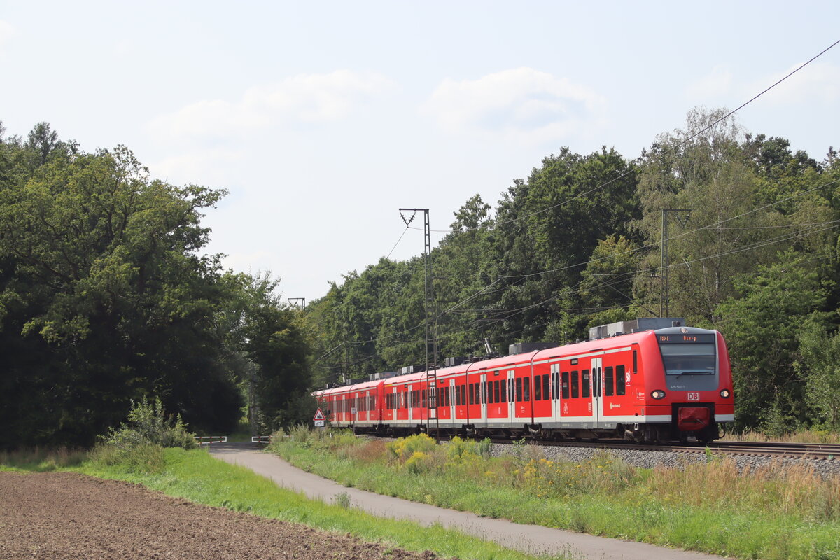 BR 111 114 von DB Regio Bayern fährt als RB6 nach Garmisch- Partenkirchen am Bahnhof München Hirschgarten vorbei am 26.7.2025