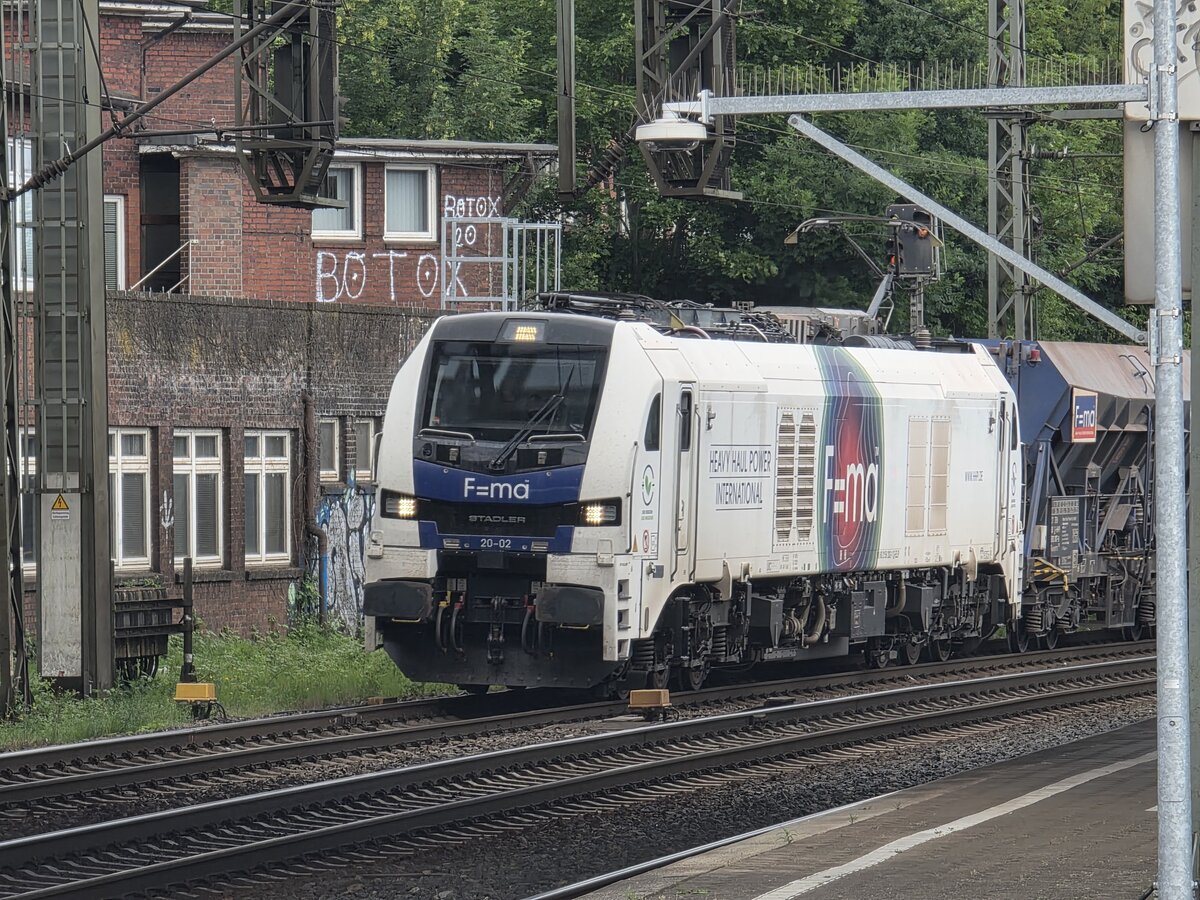 BR 159 202 (20-02) von ELP / Vermietet an : Heavy Haul Power International (F=ma) mit Schüttgutwagen durch HH-Harburg. 29.06.2025