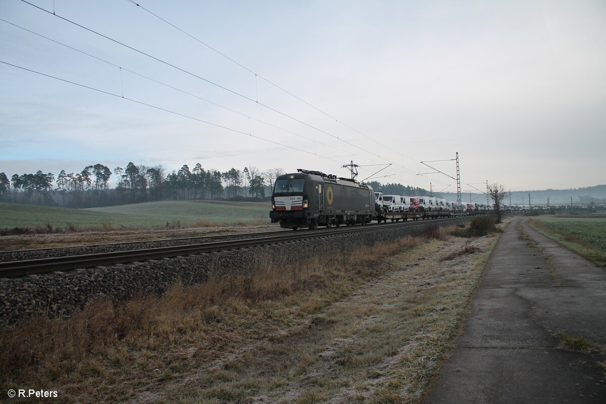 Was aus der einst Werbelok 193 875 "Connecting Europe" geworden ist, ist nur der Schriftzug an der Front, hier zieht sie kurz vor Retzbach-Zellingen ein KLV Zug. 28.12.24