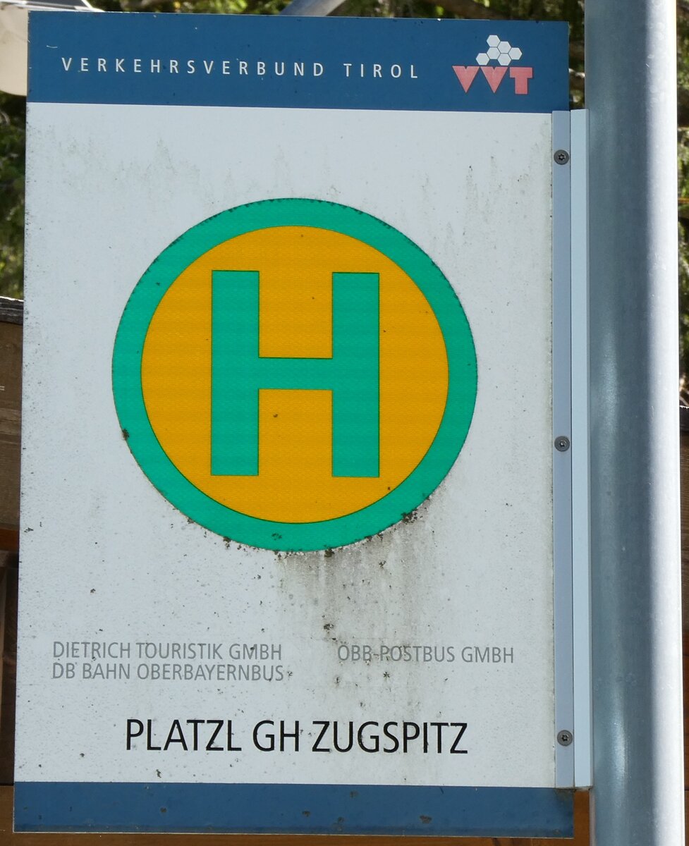 (280'530) - DIETRICH-TOURISTIK/DB/ÖBB-POSTBUS-Haltestellenschild - Leutasch, Platzl GH Zugspitz - am 18. September 2025