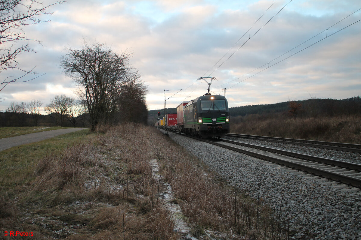193 225-0 zieht ein Containerzug bei Pölling in Richtung Nürnberg. 11.01.25