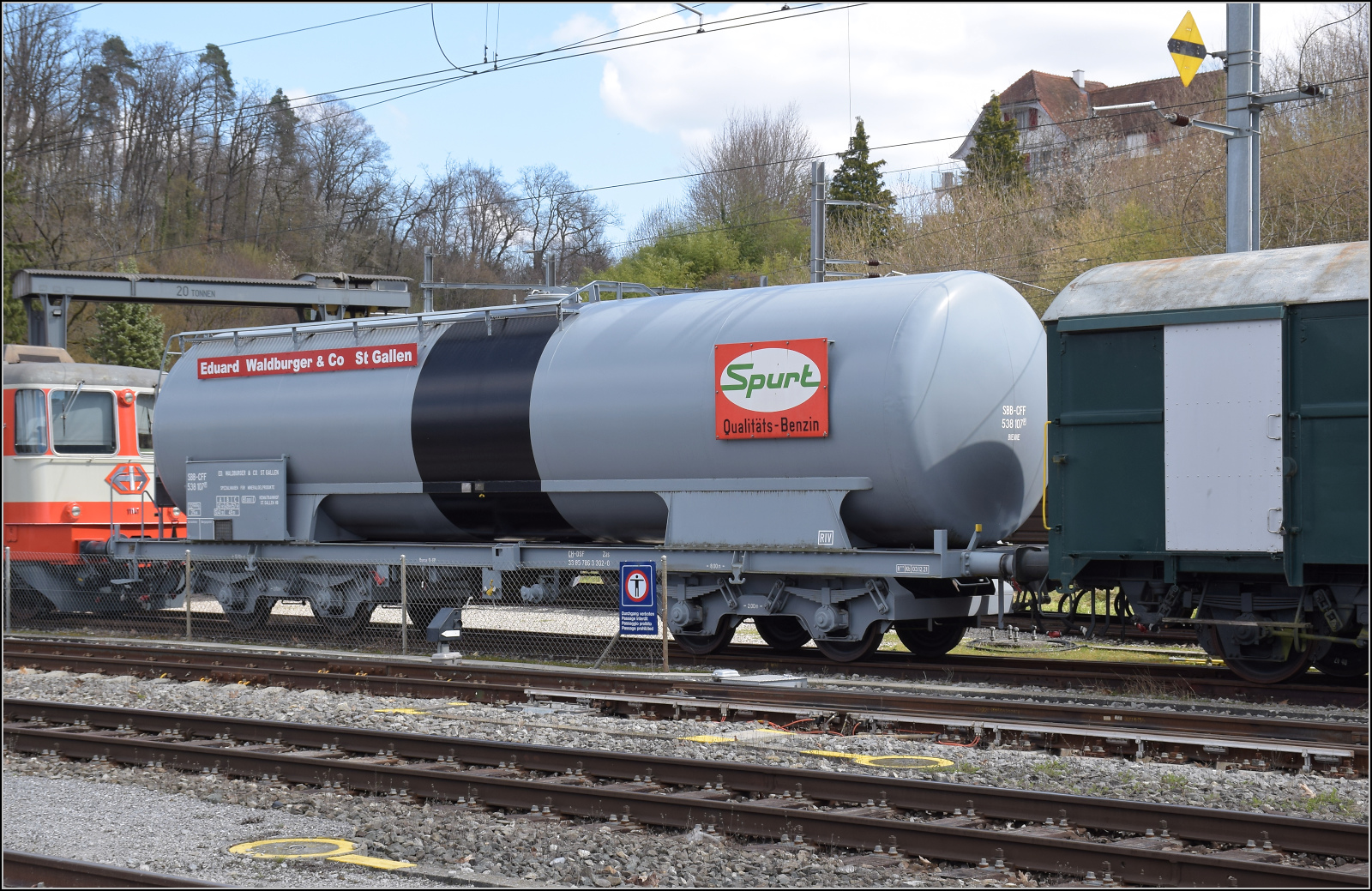 Historischer Mineralölwagen von Eduard Waldburger & Co St Gallen mit der Nummer SBB-CFF 538 107. Koblenz, April 2026.