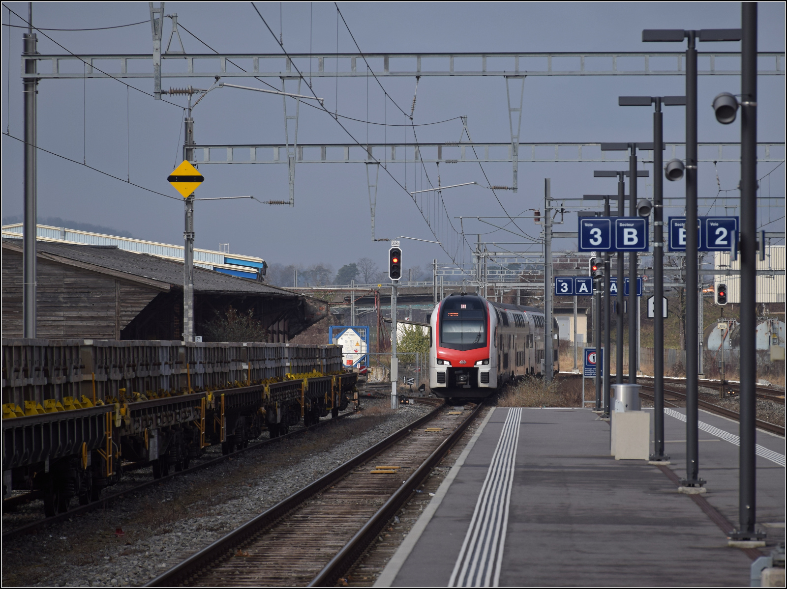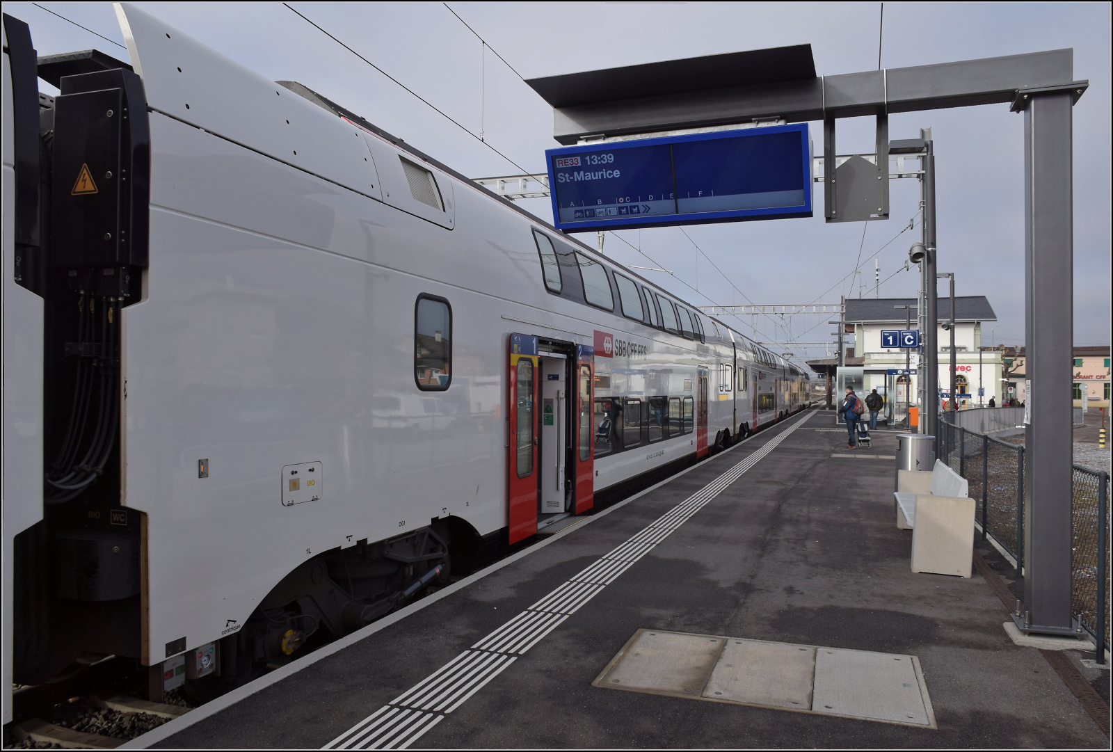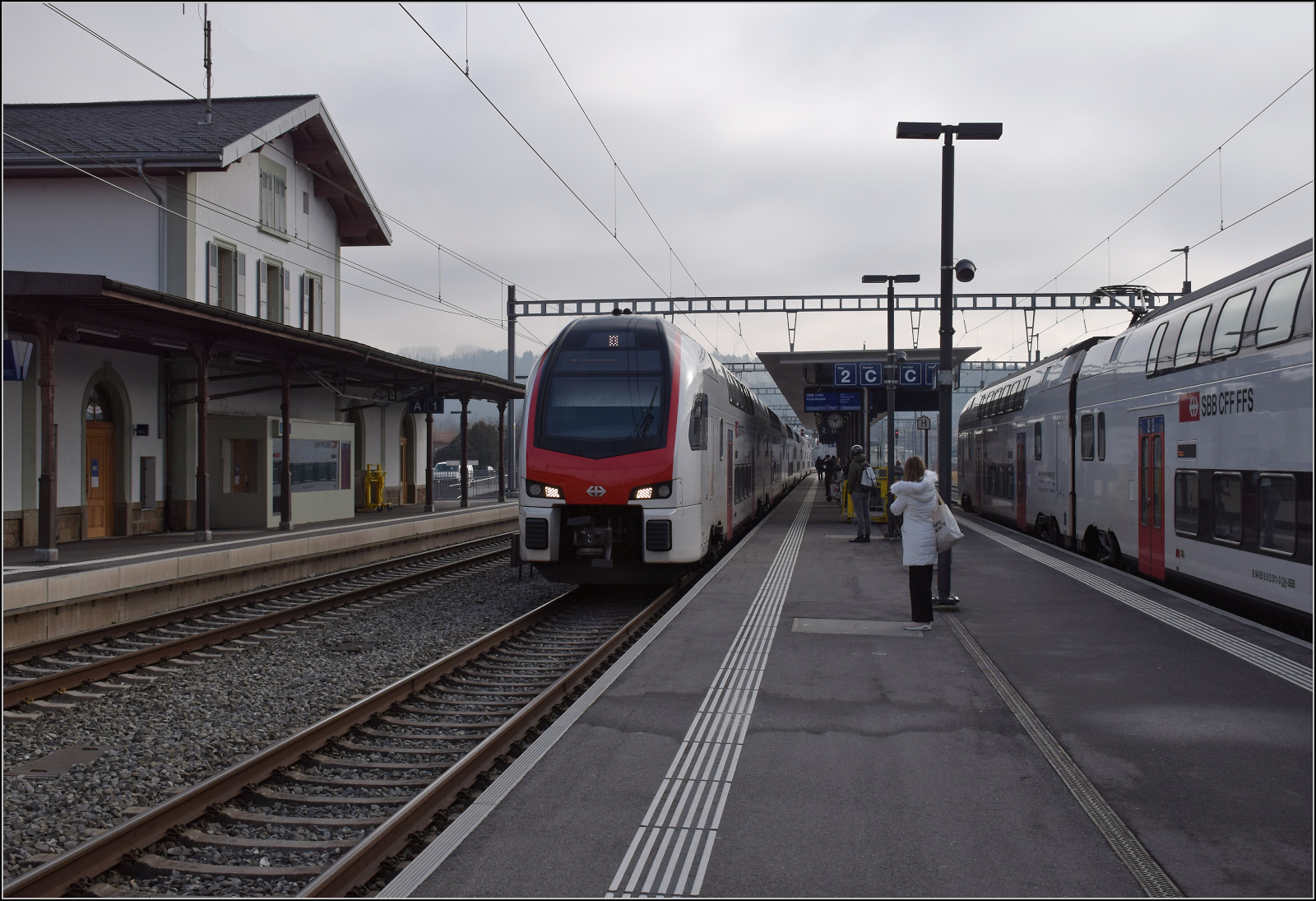 IR nach Brig mit Re 460 034 in Aigle. Januar 2026.