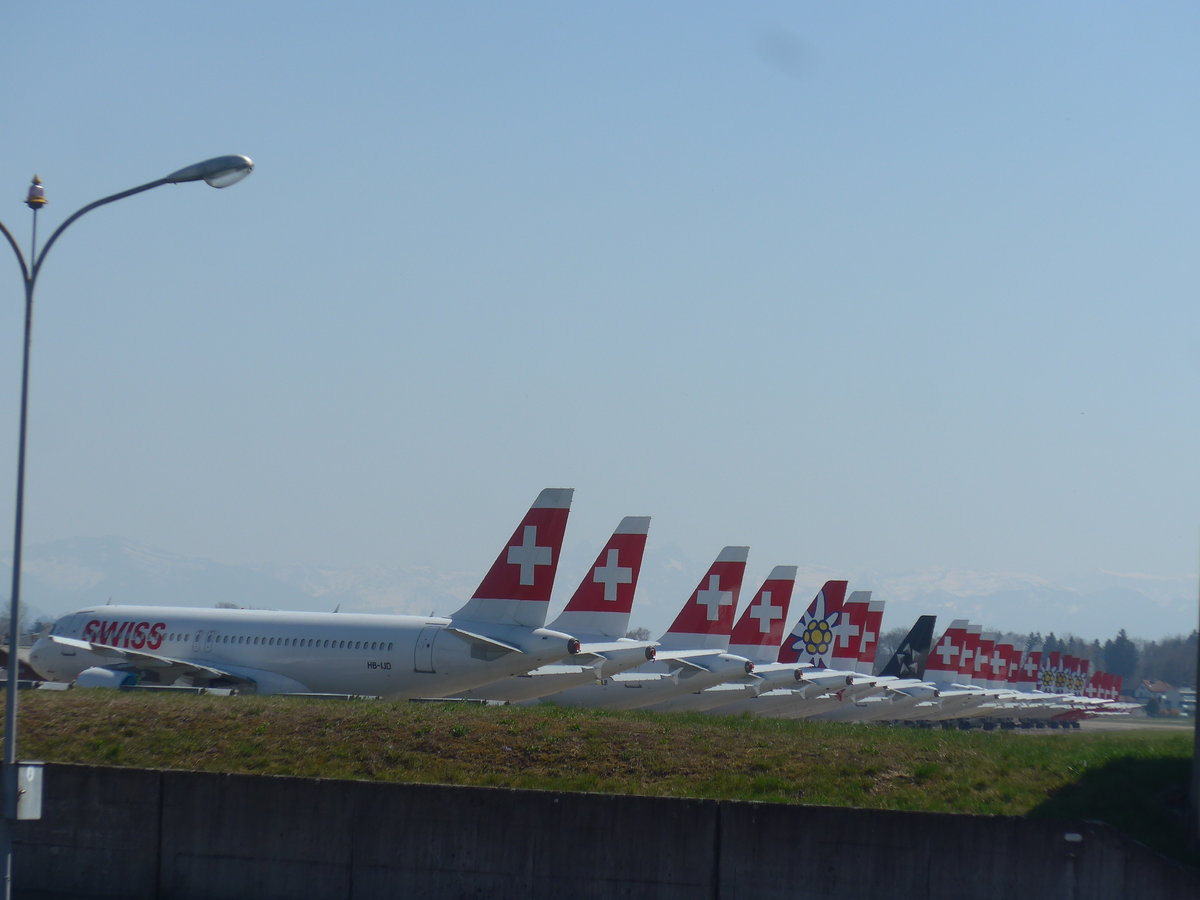 (215'909) - 23 Flugzeuge der Swiss und Edelweiss Air stehen am 6. April 2020 auf dem Flugplatz Dübendorf