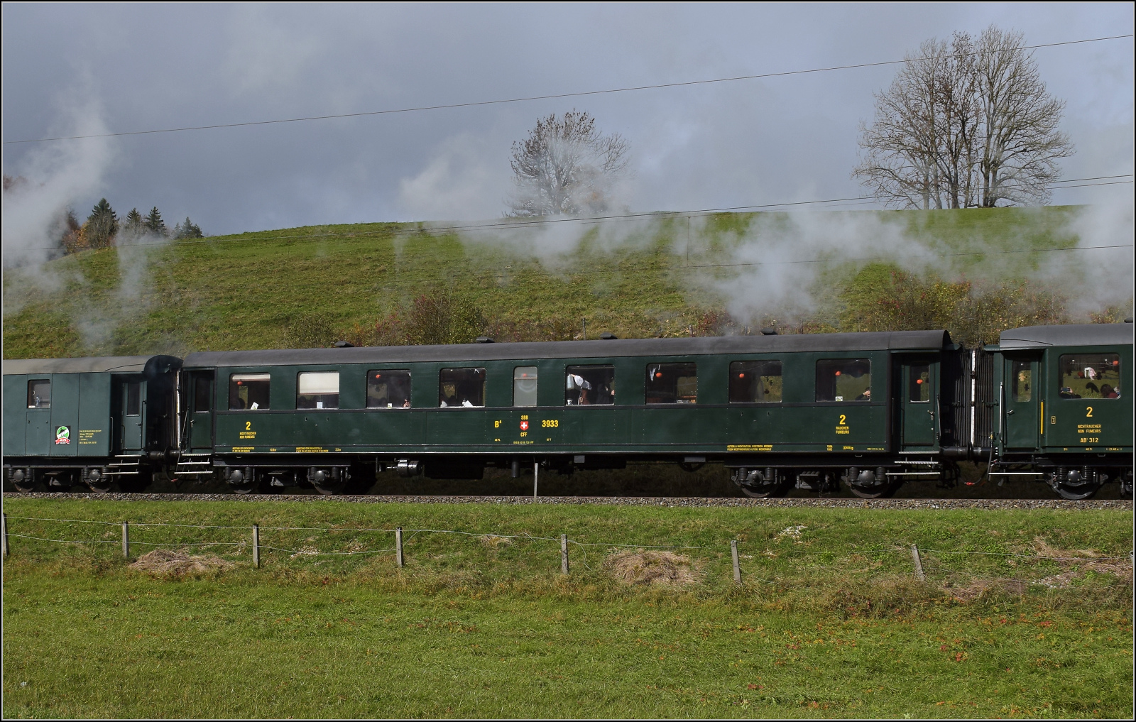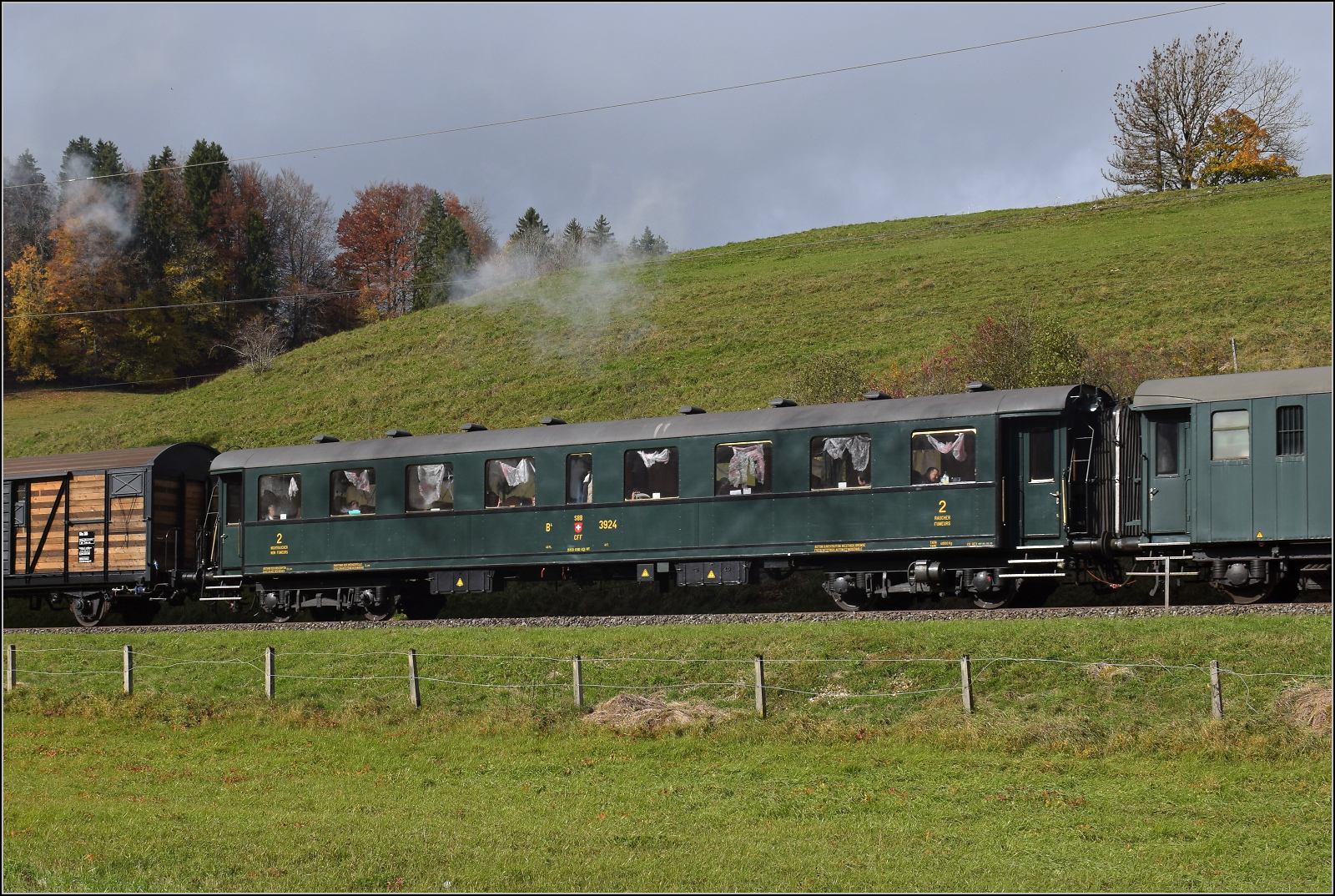 Fourgon der Baureihe schwerer Stahlwagen in genieter Bauweise F4ü 11827 bei Les Champs Berthoud. Oktober 2025.