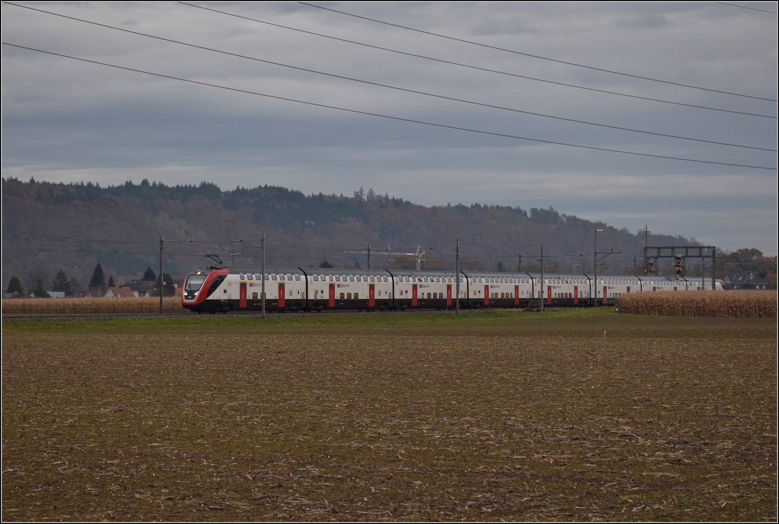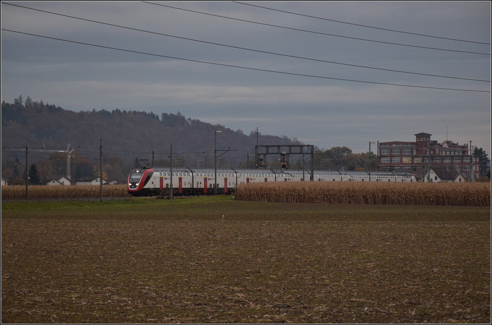 Umleitungsfahrt von RABe 502 212 in Hendschiken. November 2025.