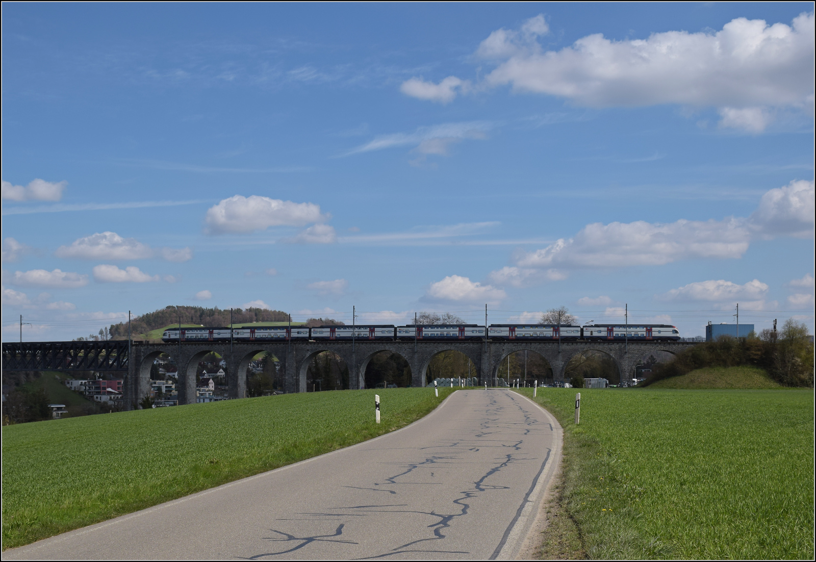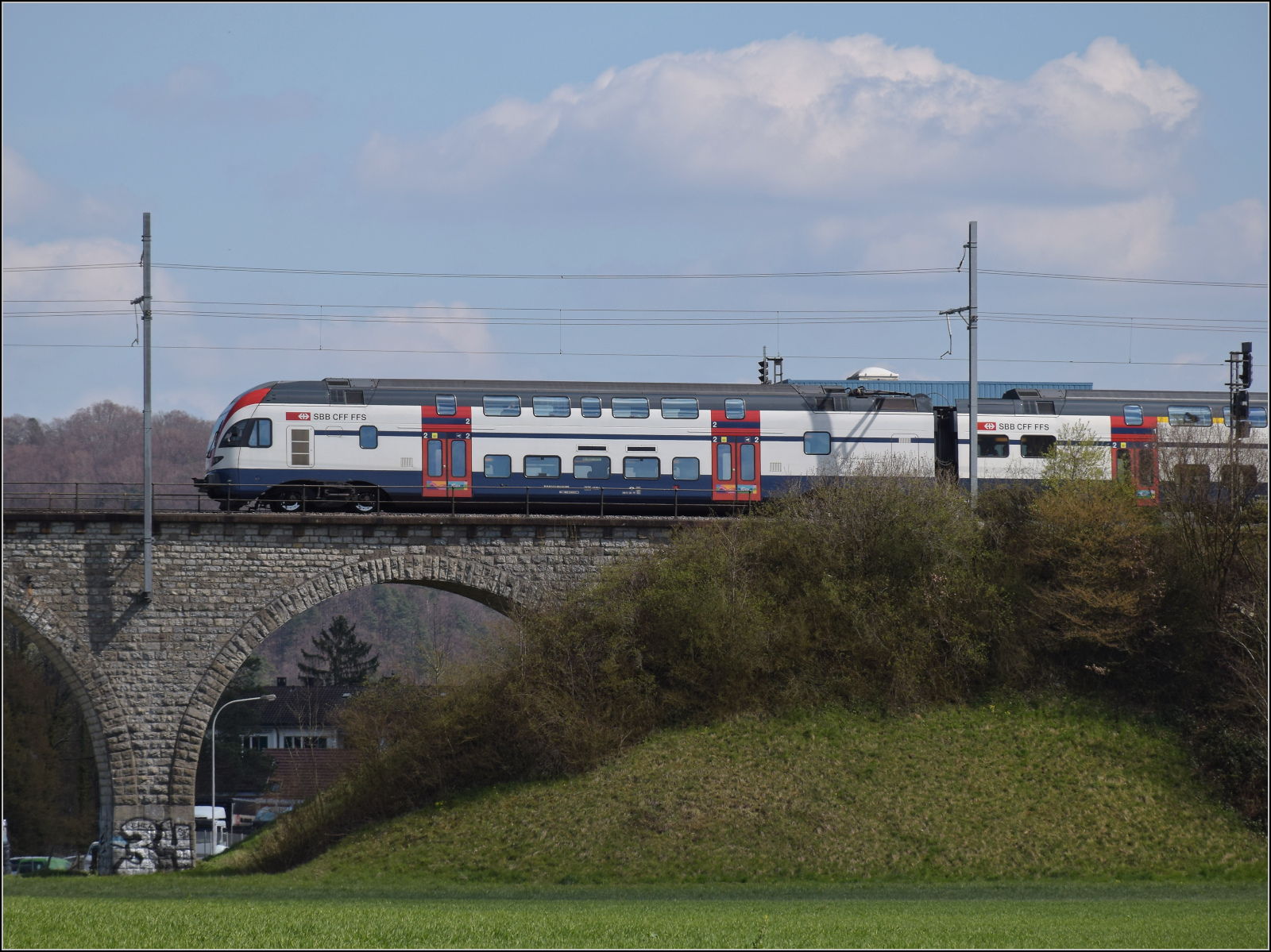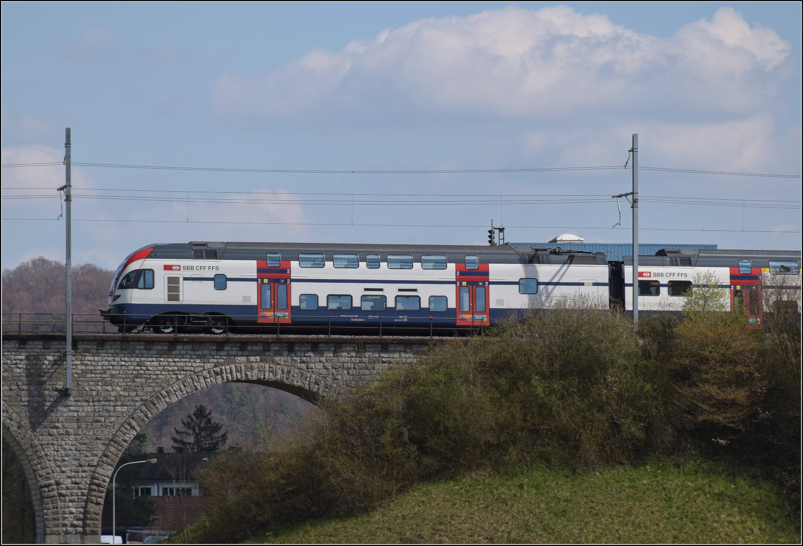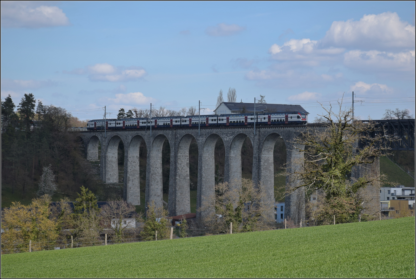 Vermutlich RABe 511 039 mit einer S-Bahn Zürich im Bahnhof Hüntwangen-Wil. April 2026.
