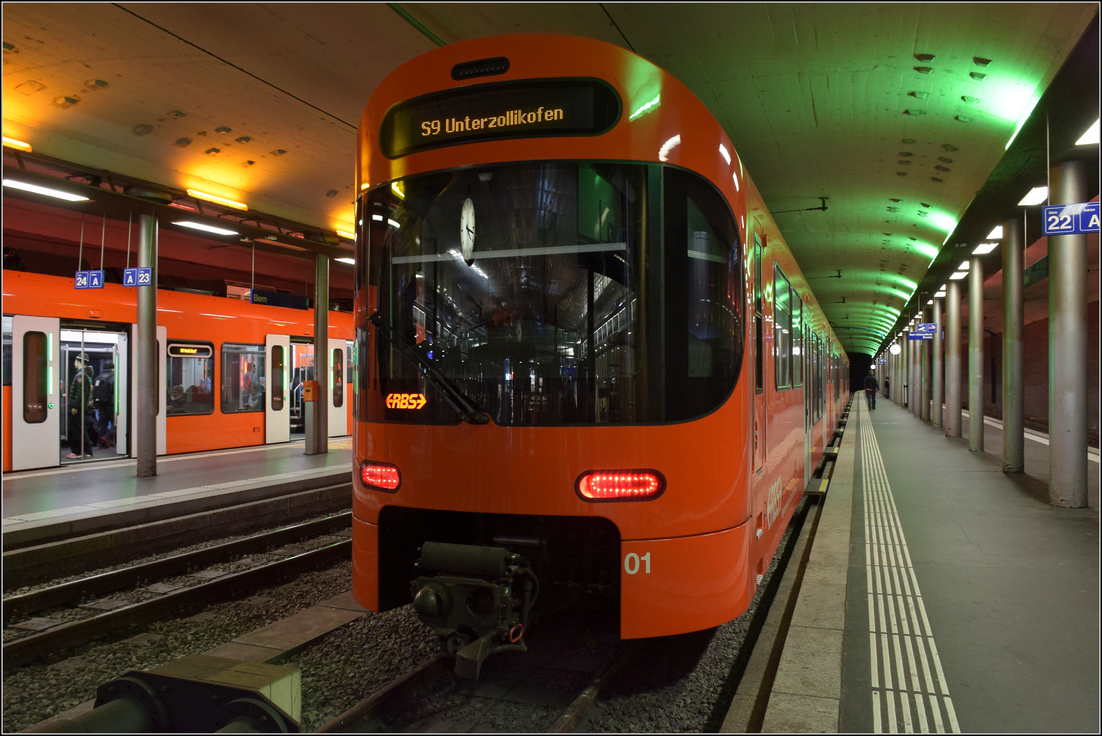 RBS-Triebzug Worbla Be 4/10 01 im eigenen Bahnhof in Bern.