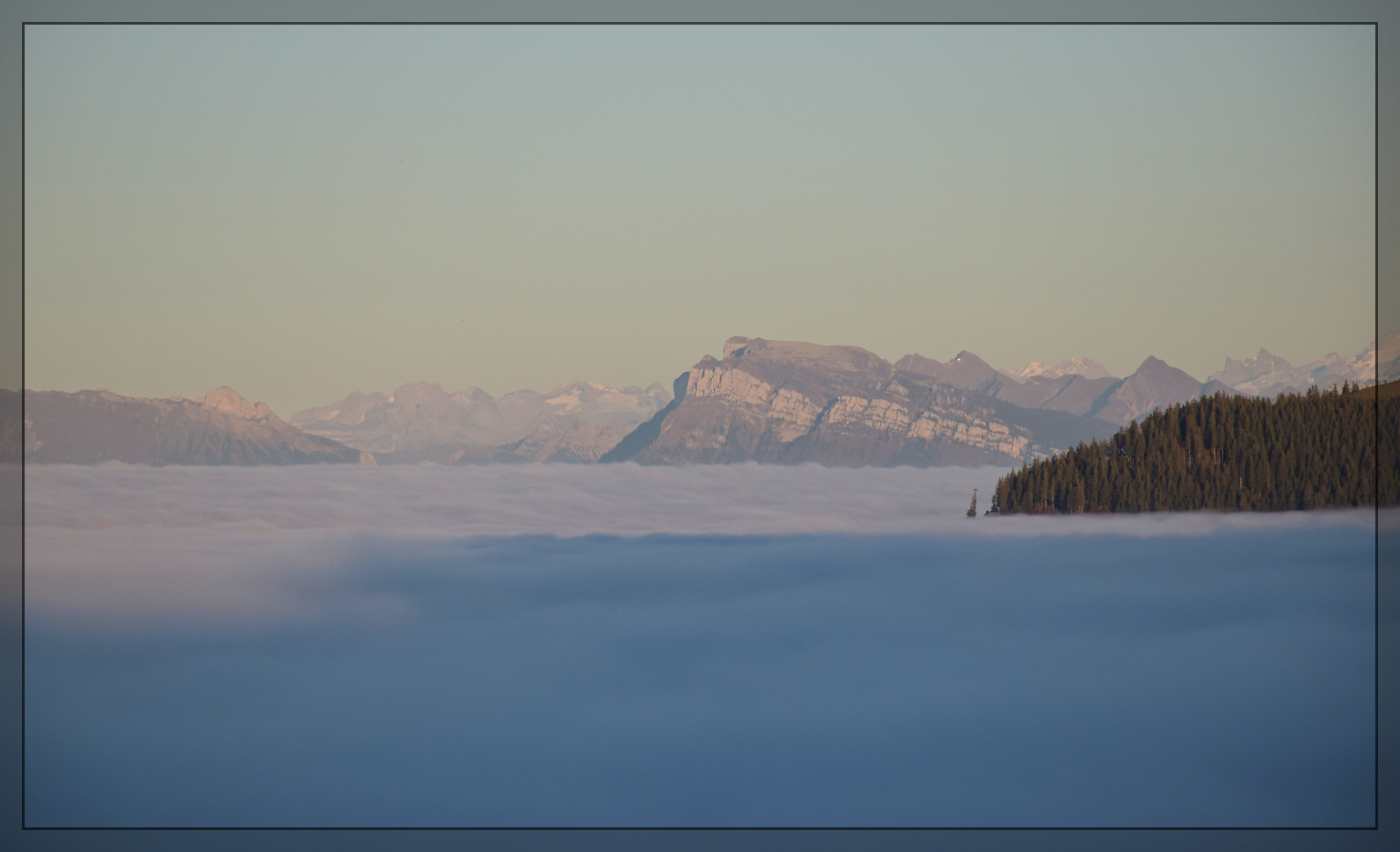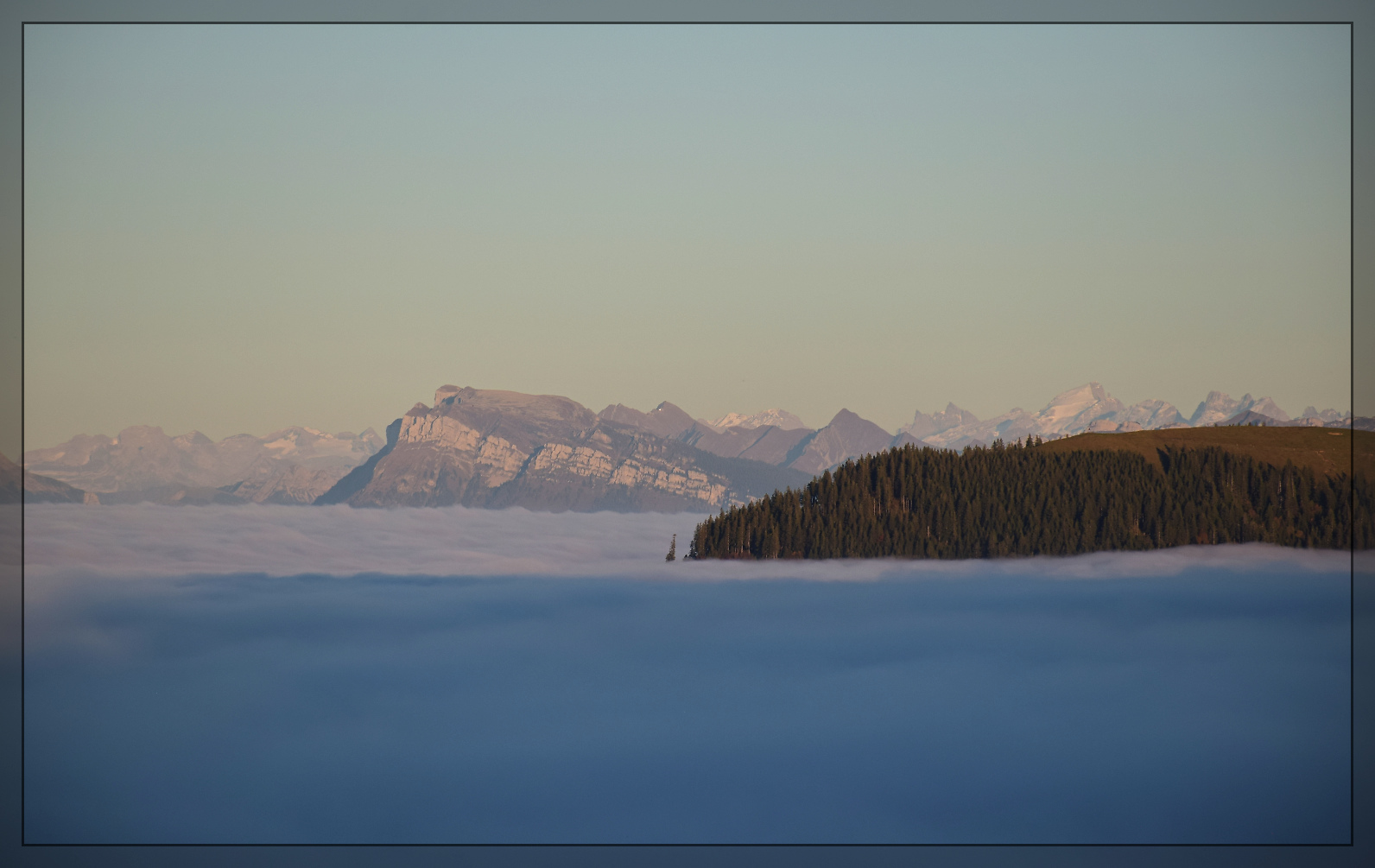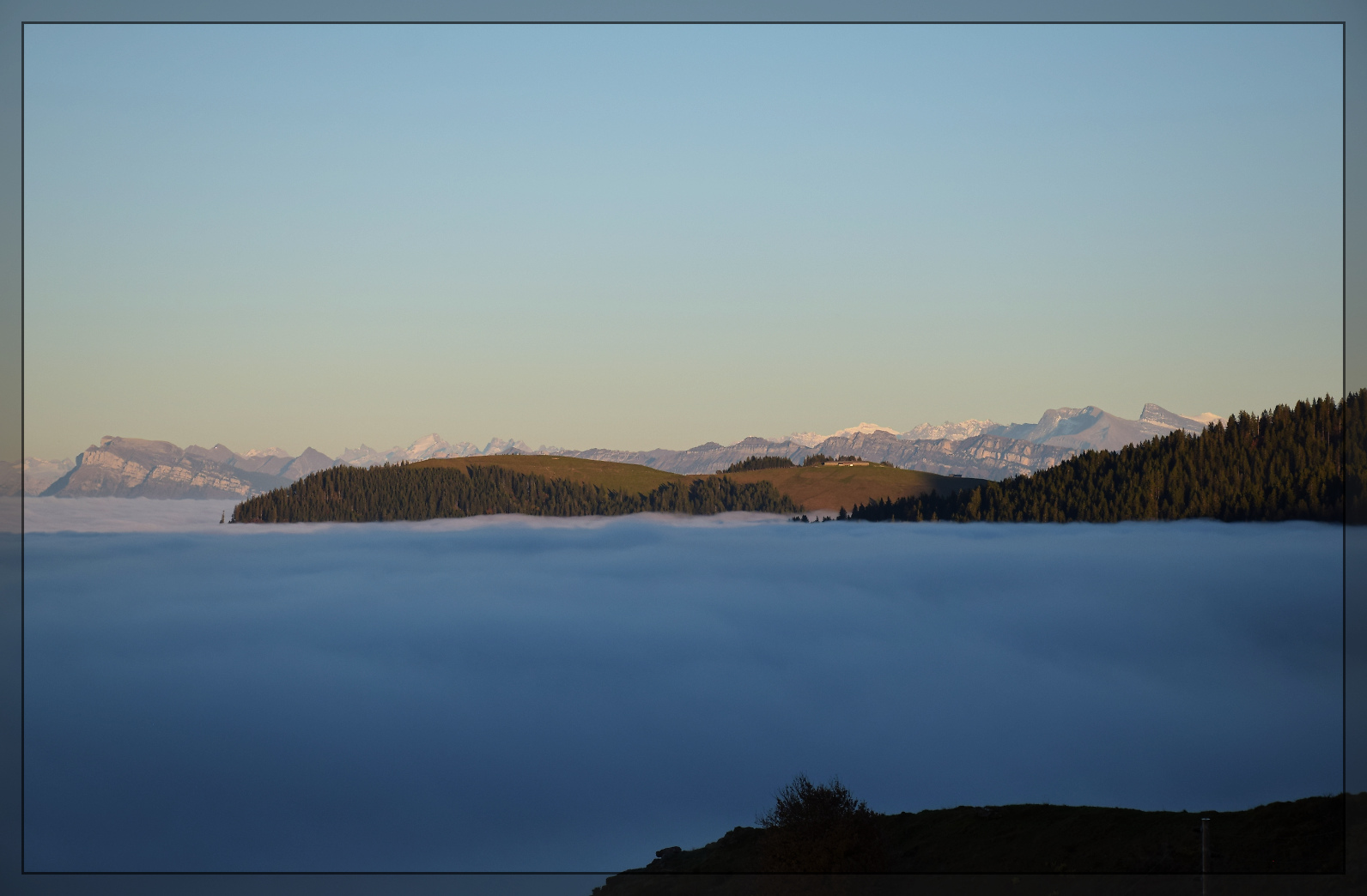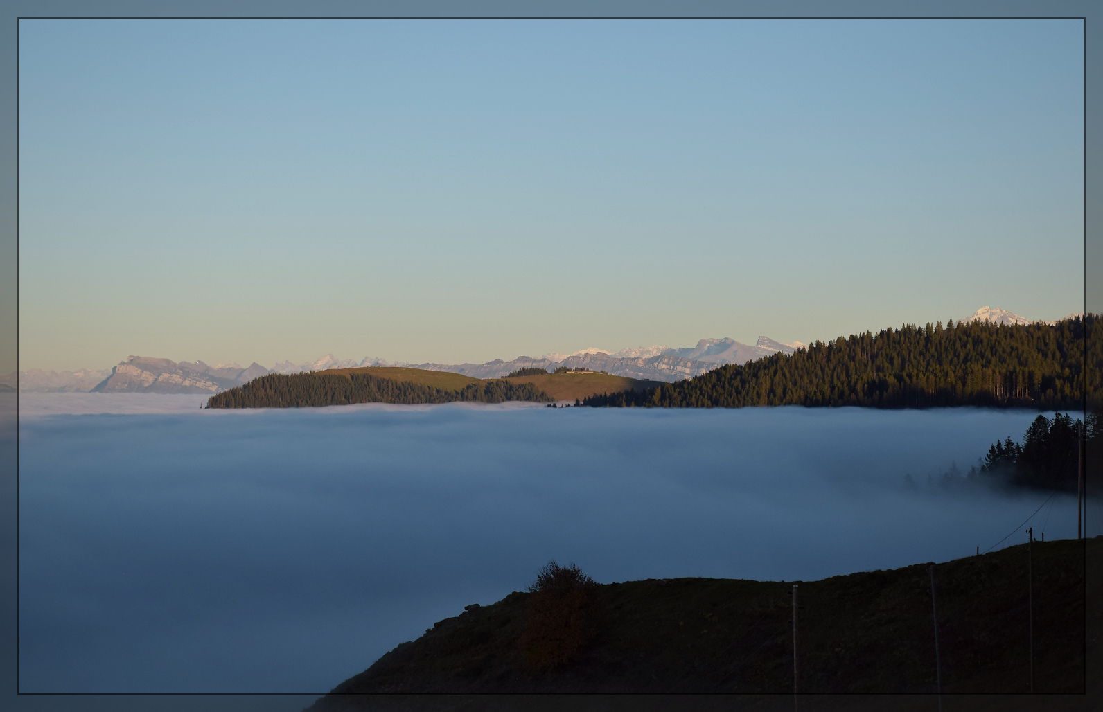 Blick vom Hotel Schwarzenbühl gen Osten. Oktober Ausklang eines hochnebligen Tages.
