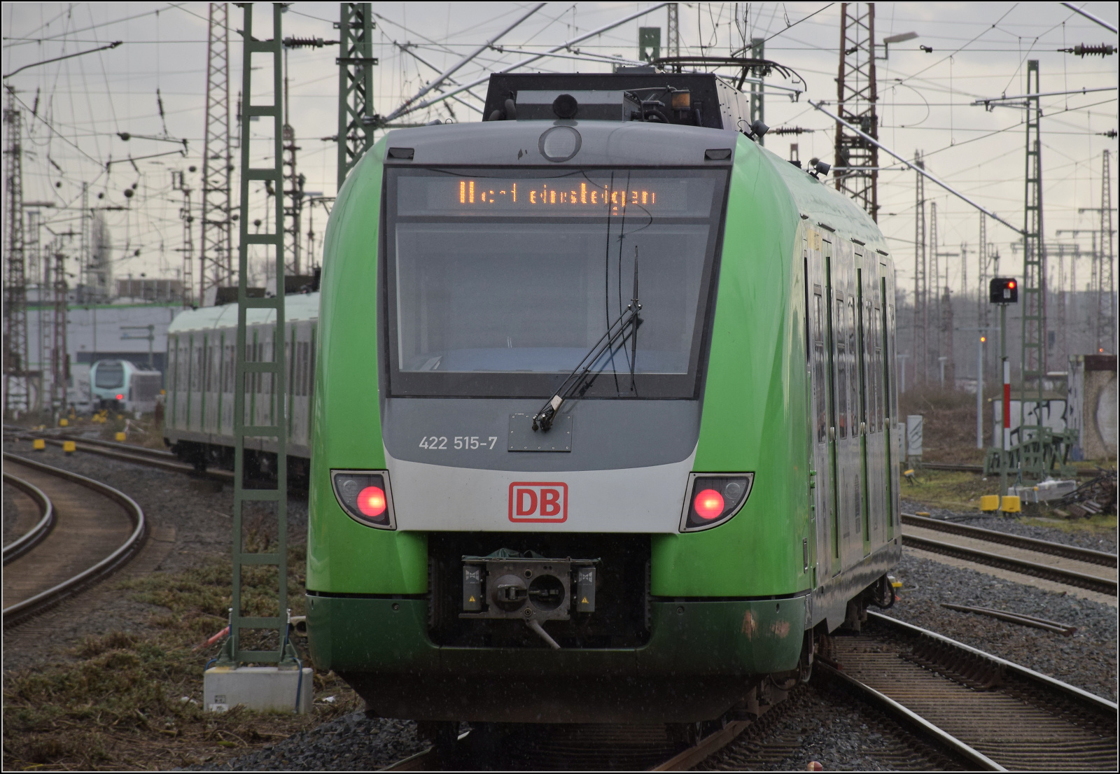 422 049 und 422 015 fahren in die Abstellung. Duisburg, Februar 2026.