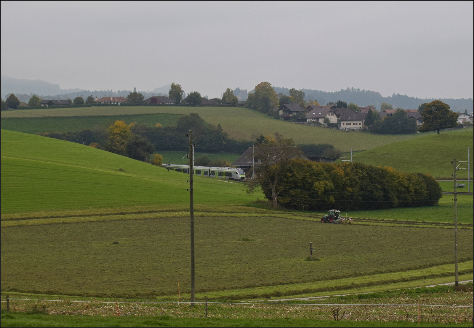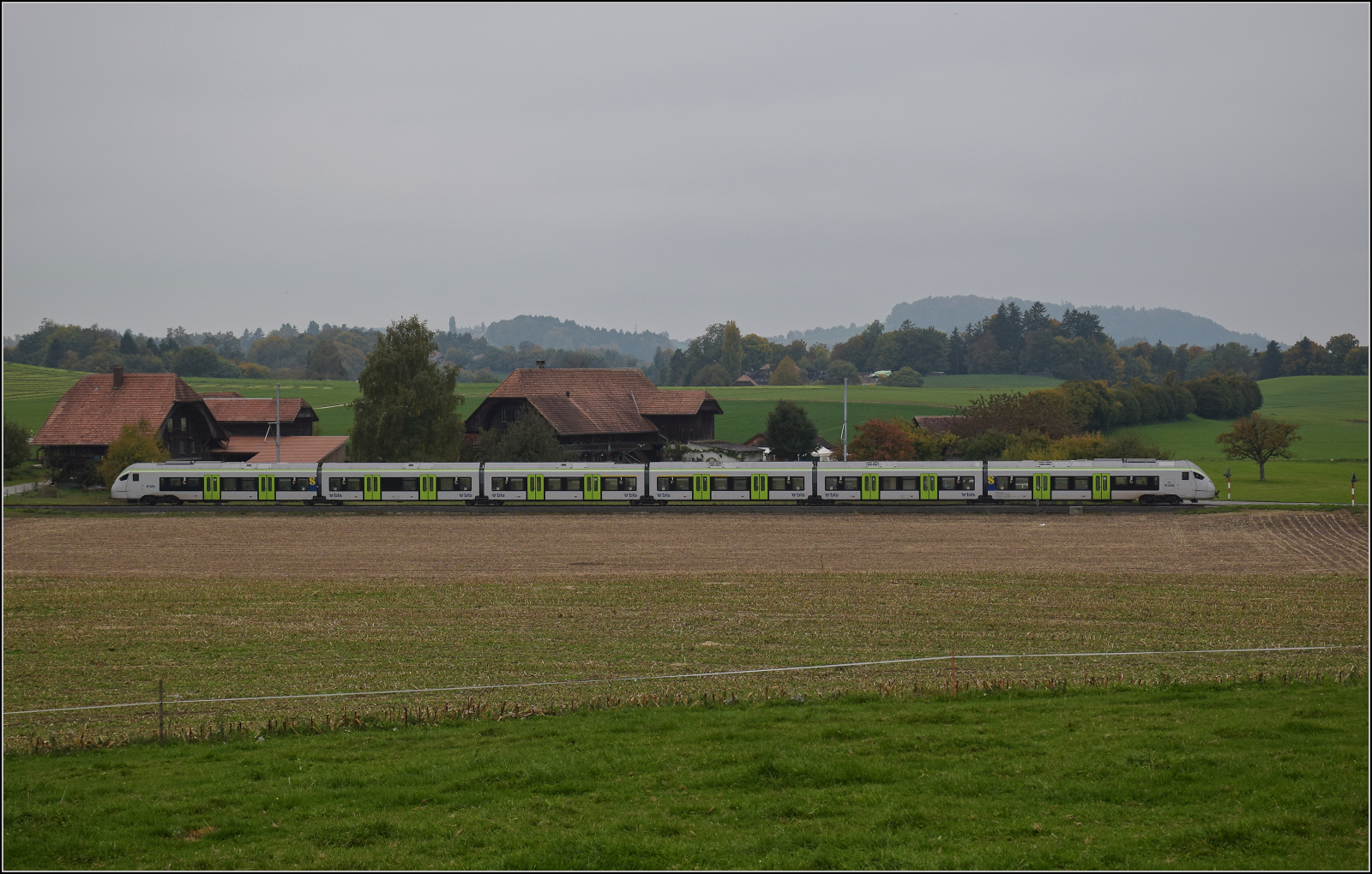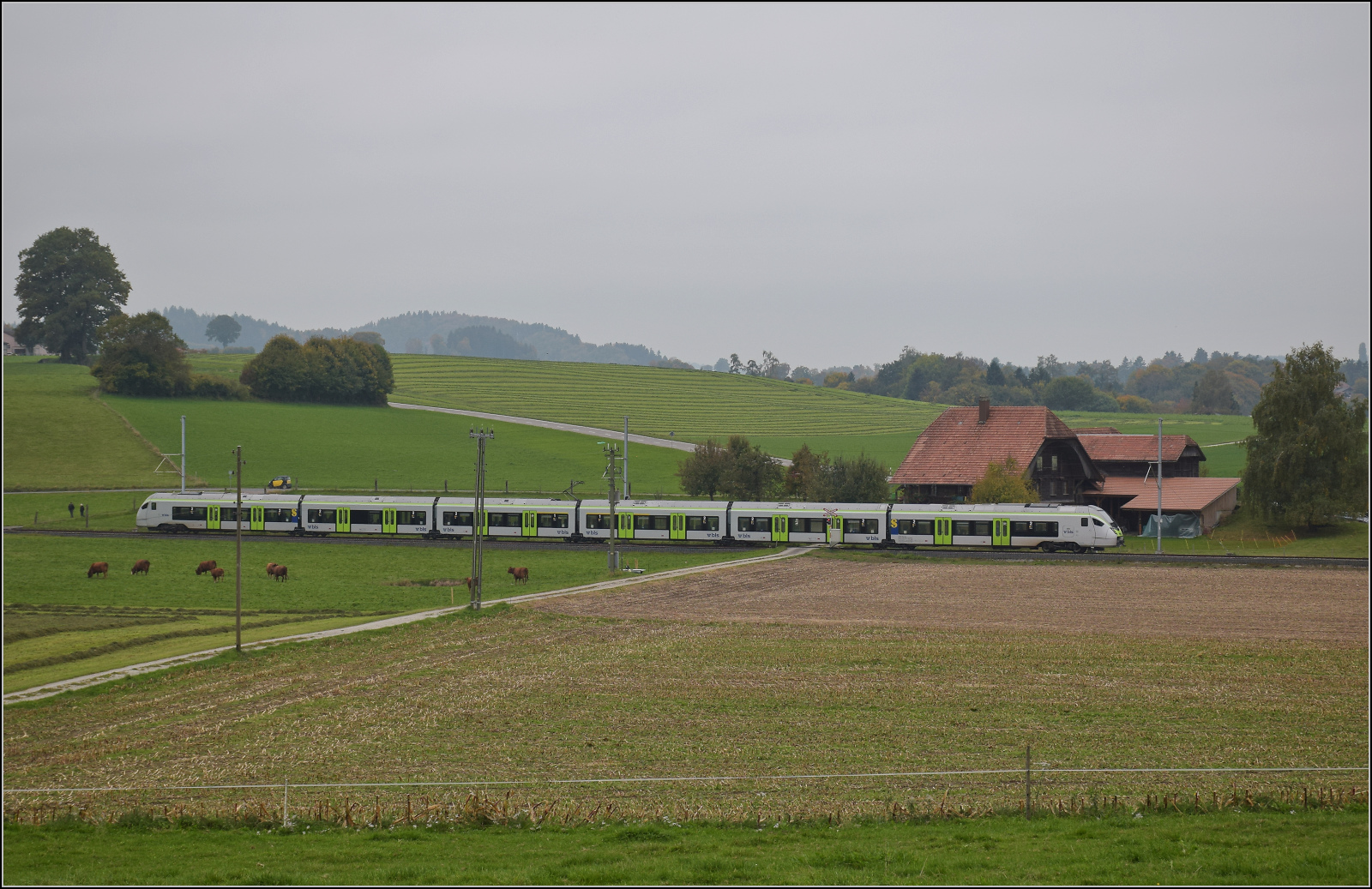 BSB Ed 3/4 51 auf ihrer Heimstrecke, bevor sie wegen ETCS ein Hausverbot bekommt. Hier im Feldmoos kurz vor der Einfahrt Schwarzenburg. Oktober 2025. km0