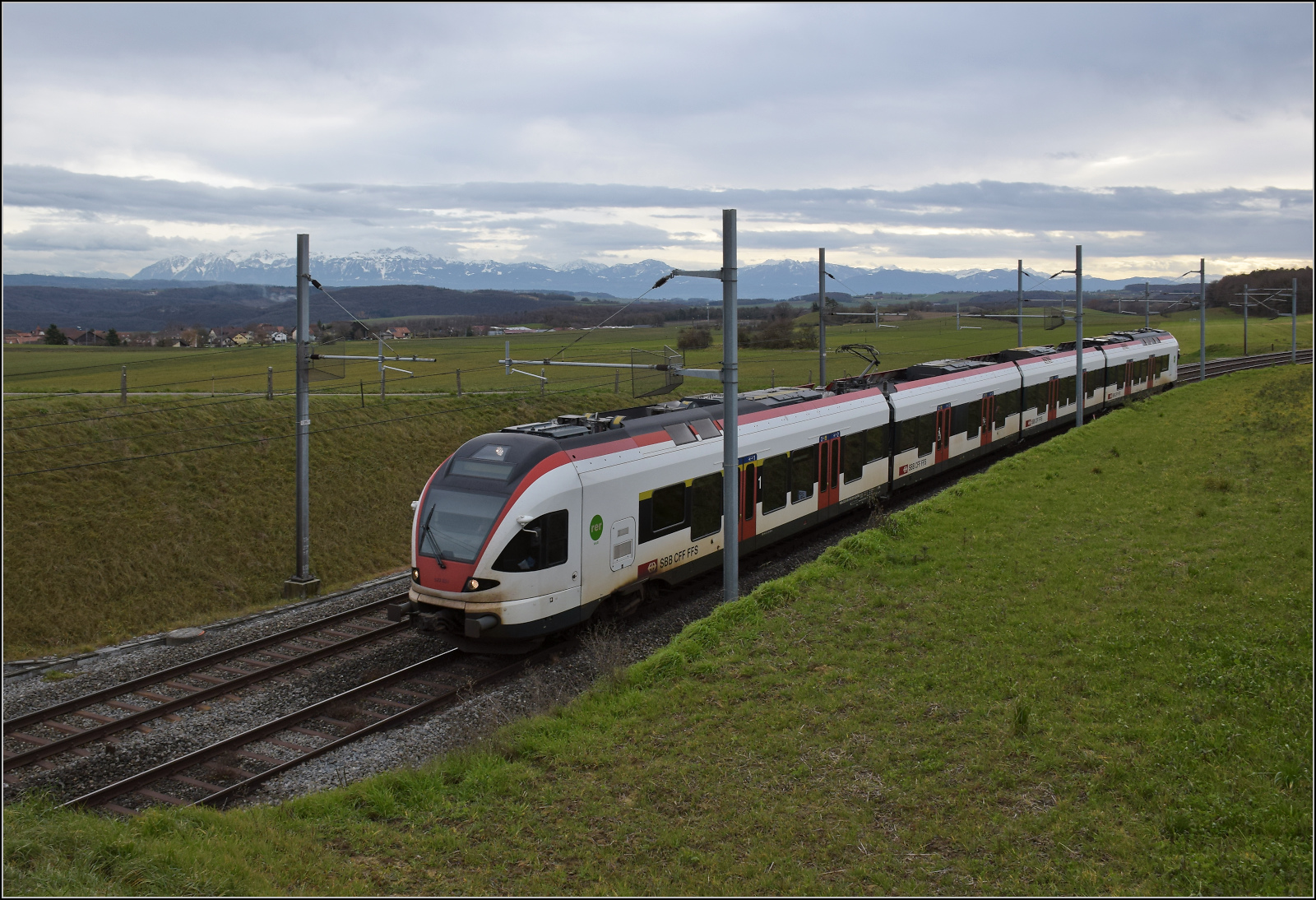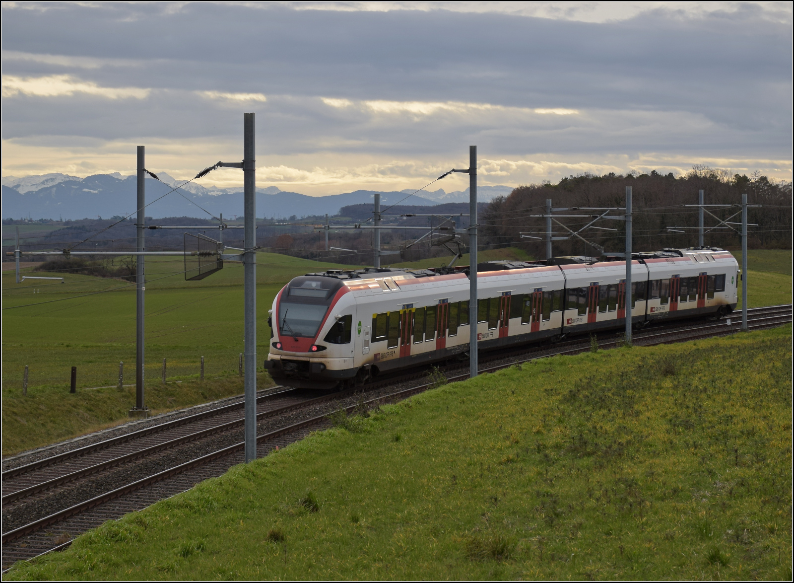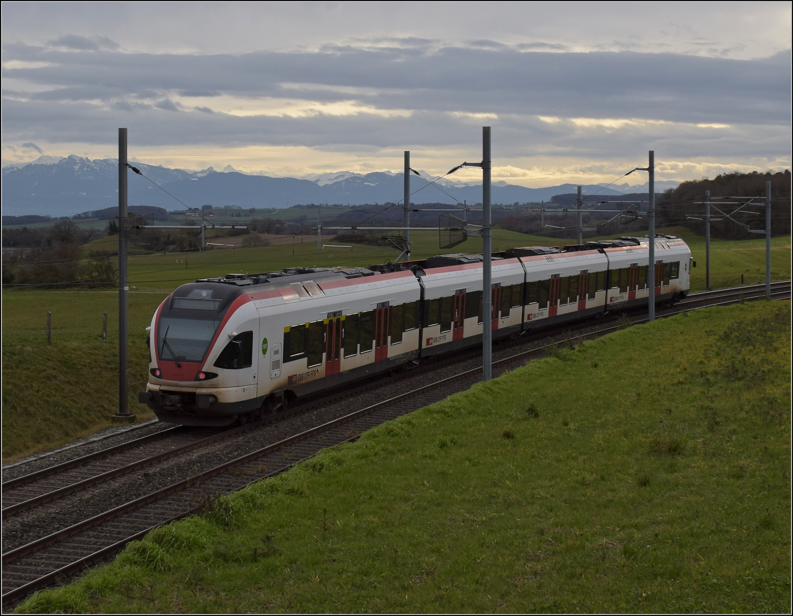 Im Fokus des Bildes ist der Bt 51 der Travys, 1982 von ACMV als EW I geliefert wurde. Er steht trotz einiger Rostflecken immer noch im Glanze seines Angesichts nahe der Bahnsteige in Yverdon-les-Bains. Dezember 2025. km0