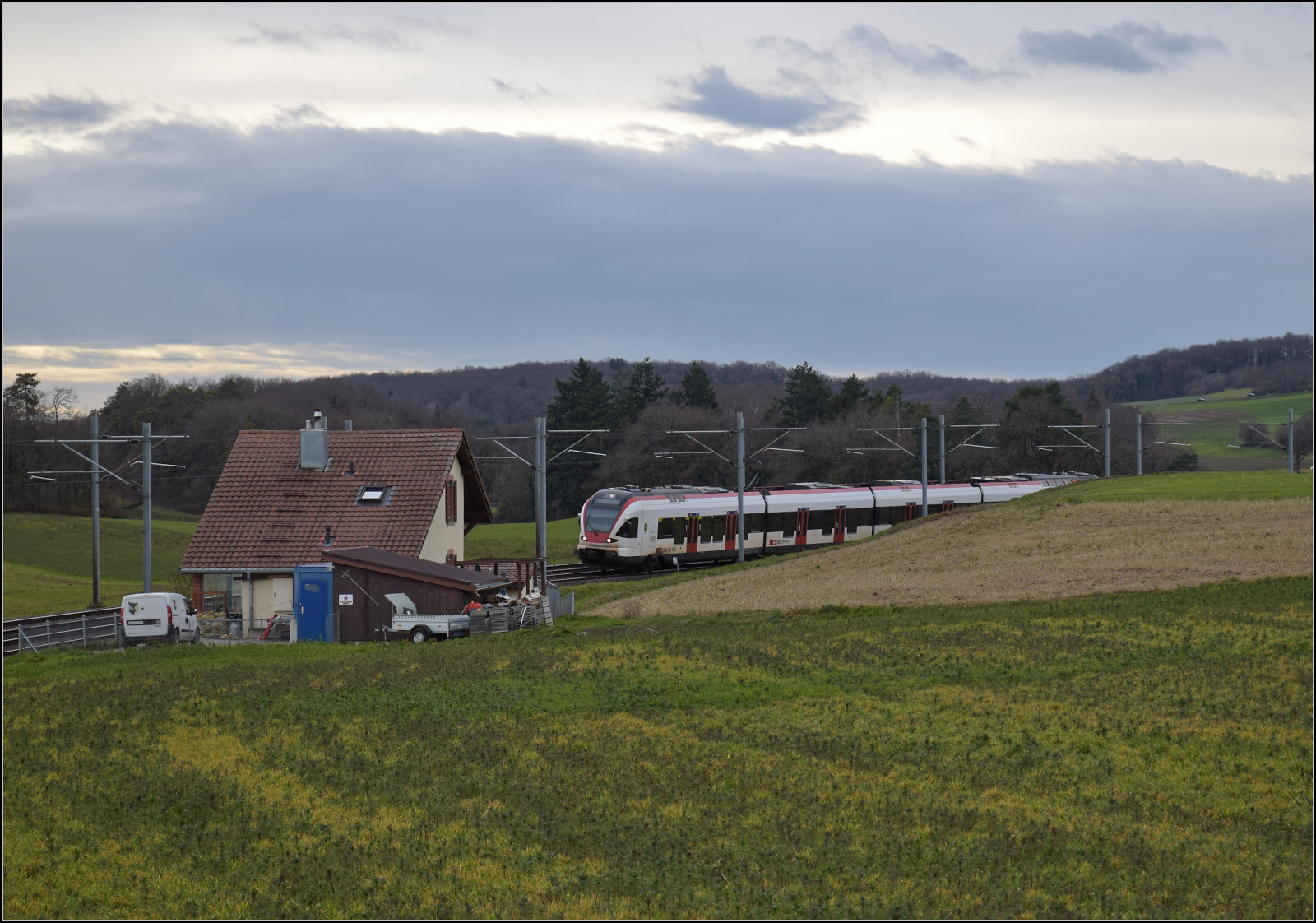 Der Triebwagen Be 4/4 1 ist der letzte bei der Travys erhaltene von drei Triebwagen, die von der ACMV 1981 an die YSteC geliefert wurden. Sie erinnern vom Design stark an die NPZ mit zwei Führerständen. In Yverdon-les-Bains steht an diesem Wochenende kalt auf dem Abstellgleis. Für die YSteC und die BAM wurde nur eine Kleinserie mit 8 Triebwagen aufgelegt. Dezember 2025. km0