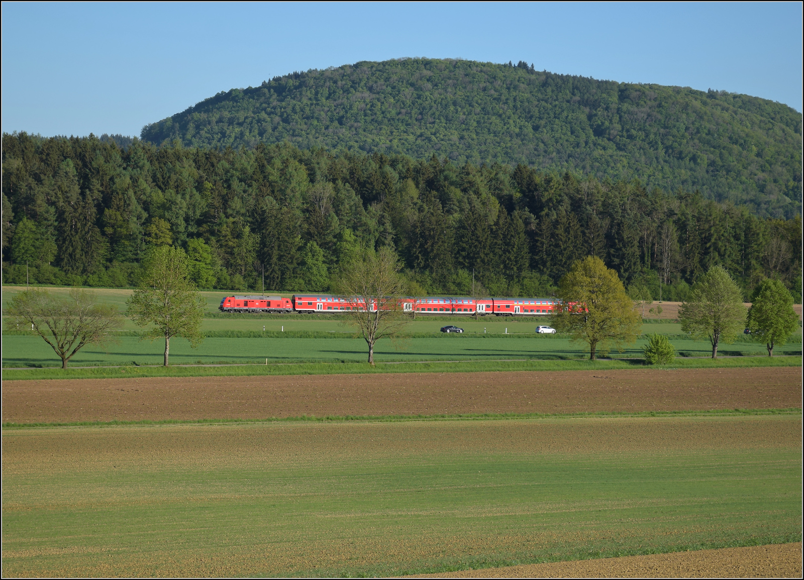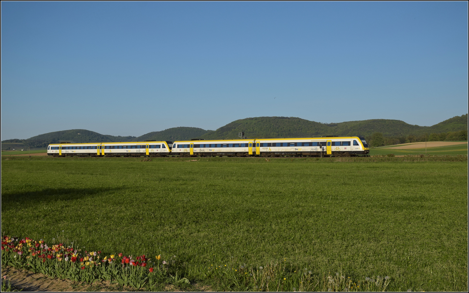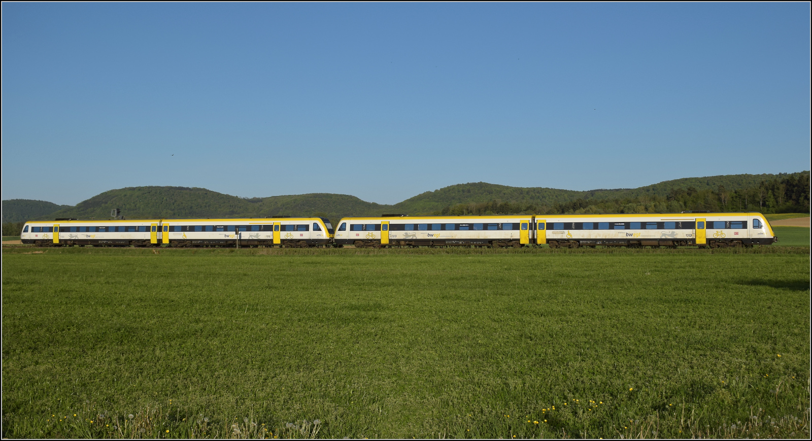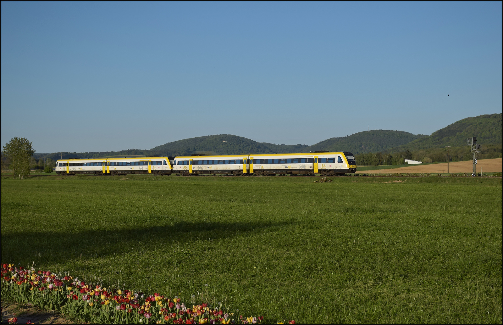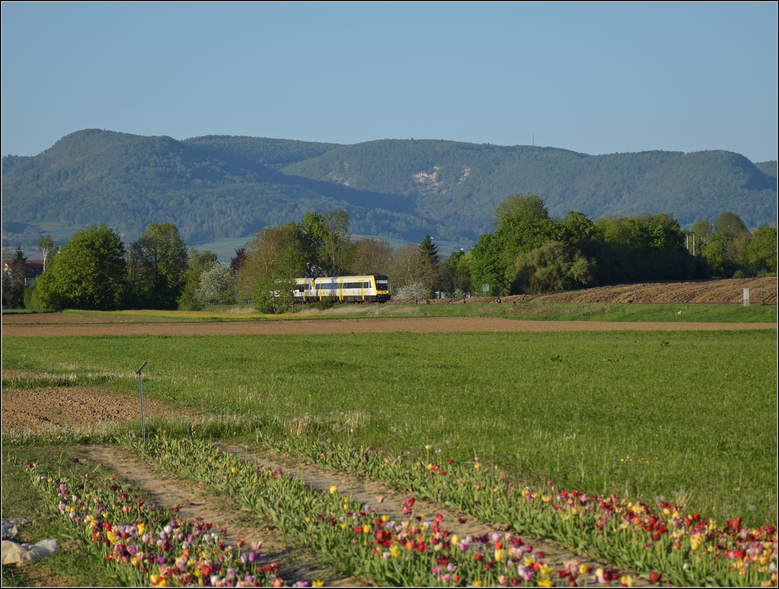 362 874 von Railsystems ist als Oldtimer mit Bauzug standesgemäß über die Sauschwänzlebahn nach Lauchringen gefahren. April 2026. km0