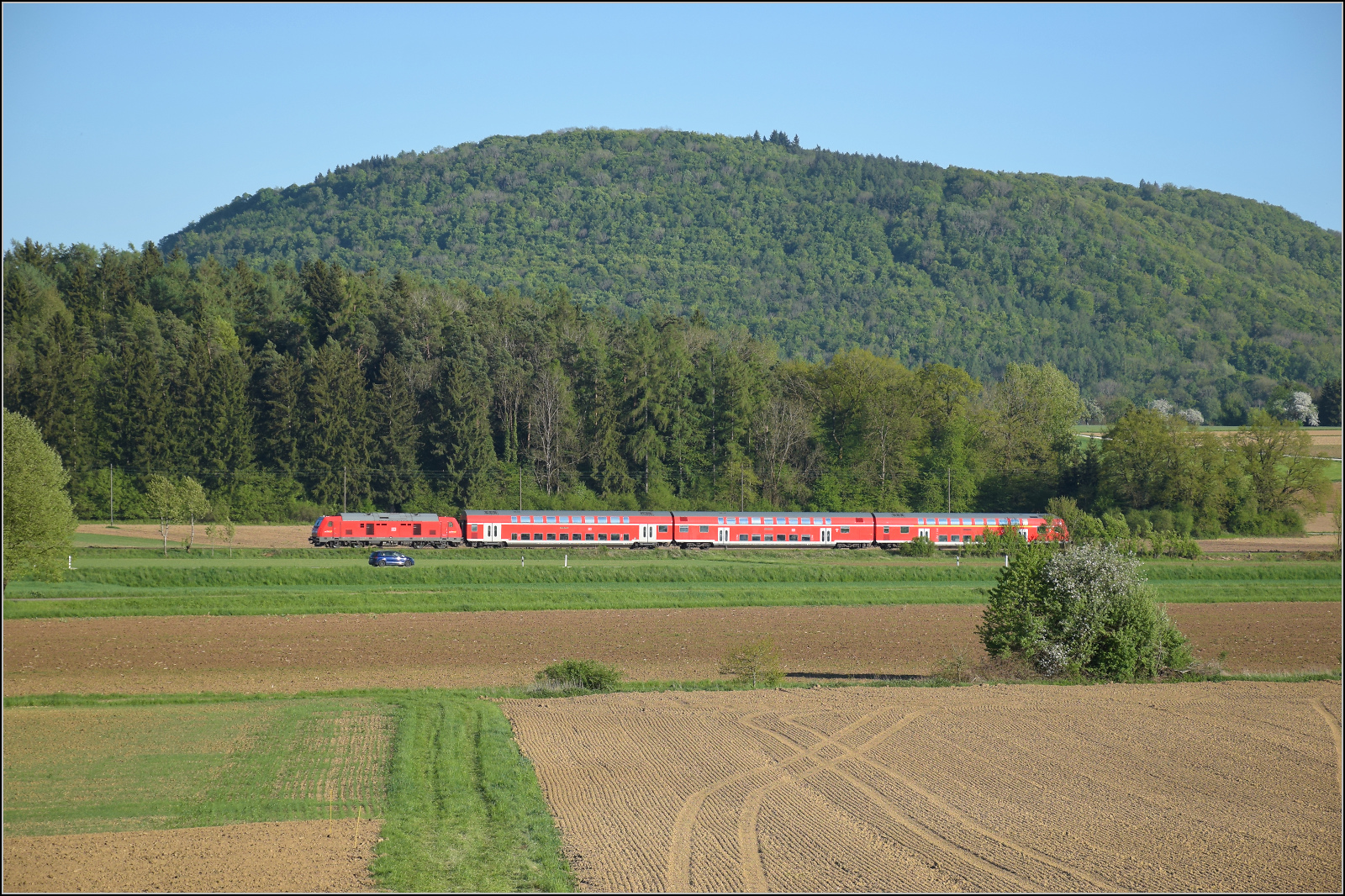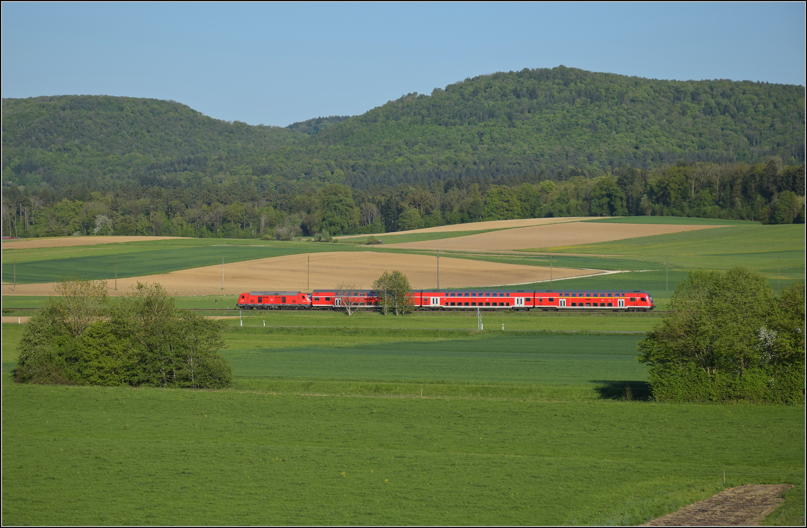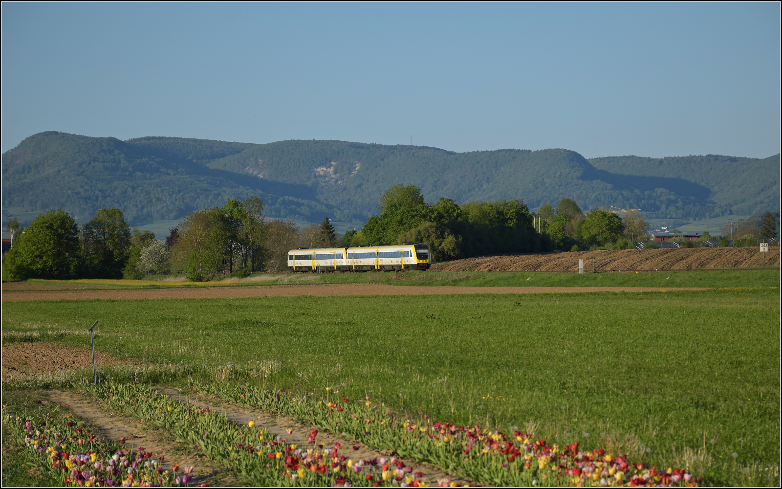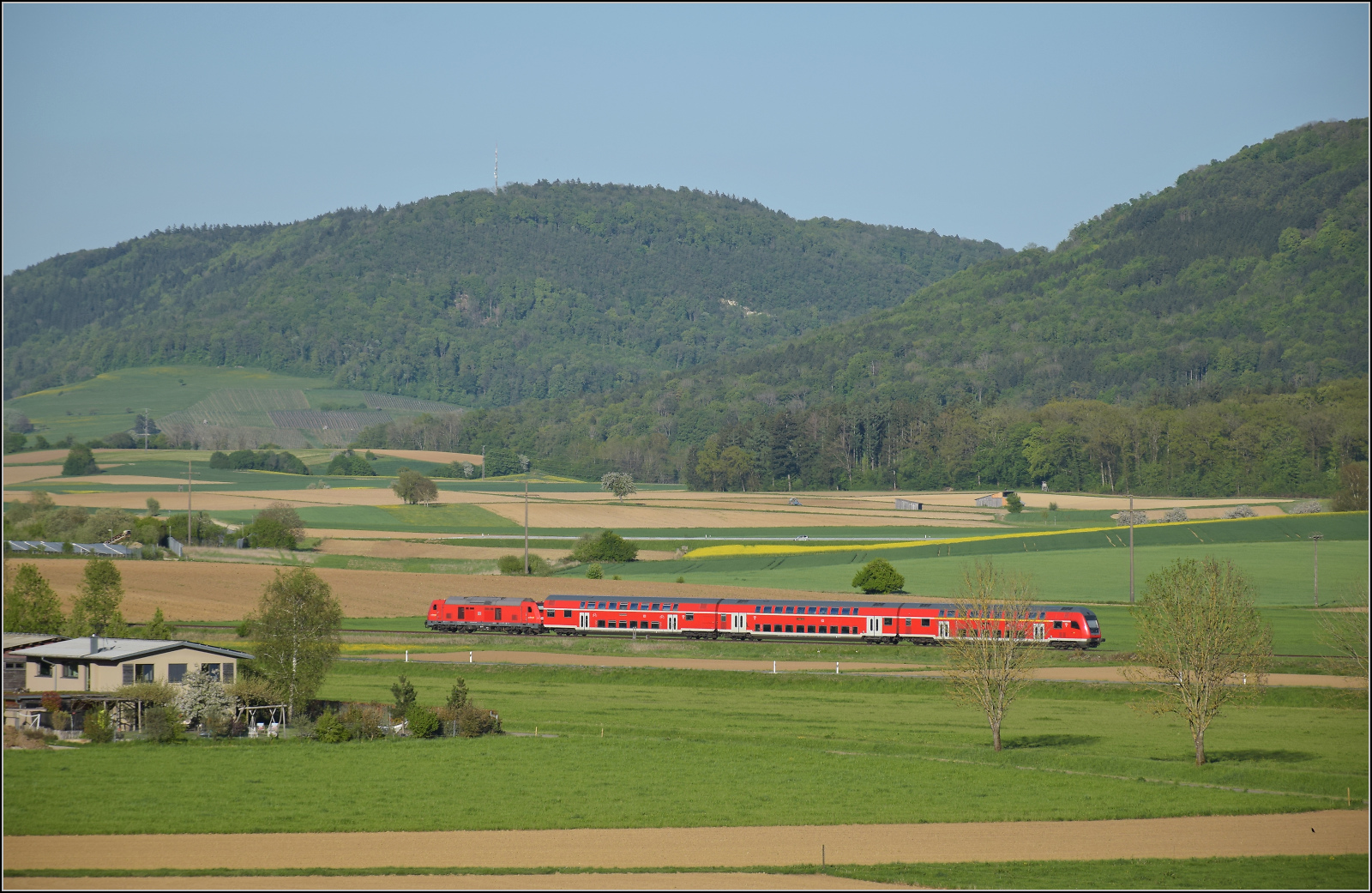 362 874 von Railsystems ist als Oldtimer mit Bauzug standesgemäß über die Sauschwänzlebahn nach Lauchringen gefahren. April 2026. km0