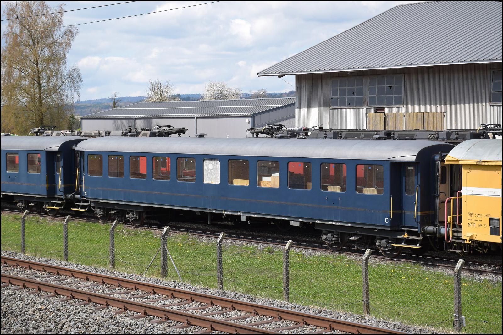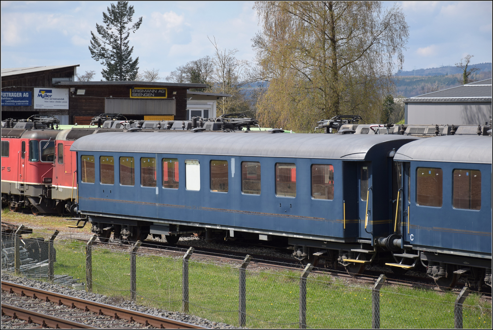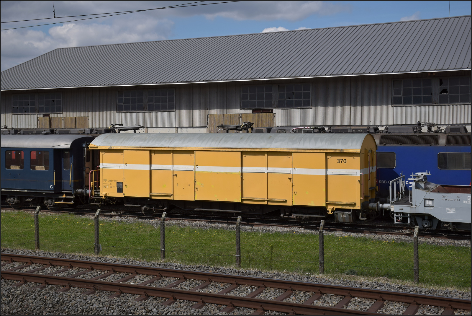 Der Postwagen 370 steht ohne weitere Nummer in der Lokreihe beim Dampflokdepot Full. April 2026.
