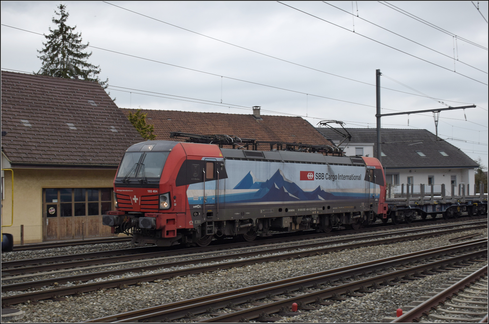 Ganz nebenbei bringt noch 193 464 'Arth Goldau' einen Güterzug durch Niederbipp Richtung Oensingen. Februar 2026.