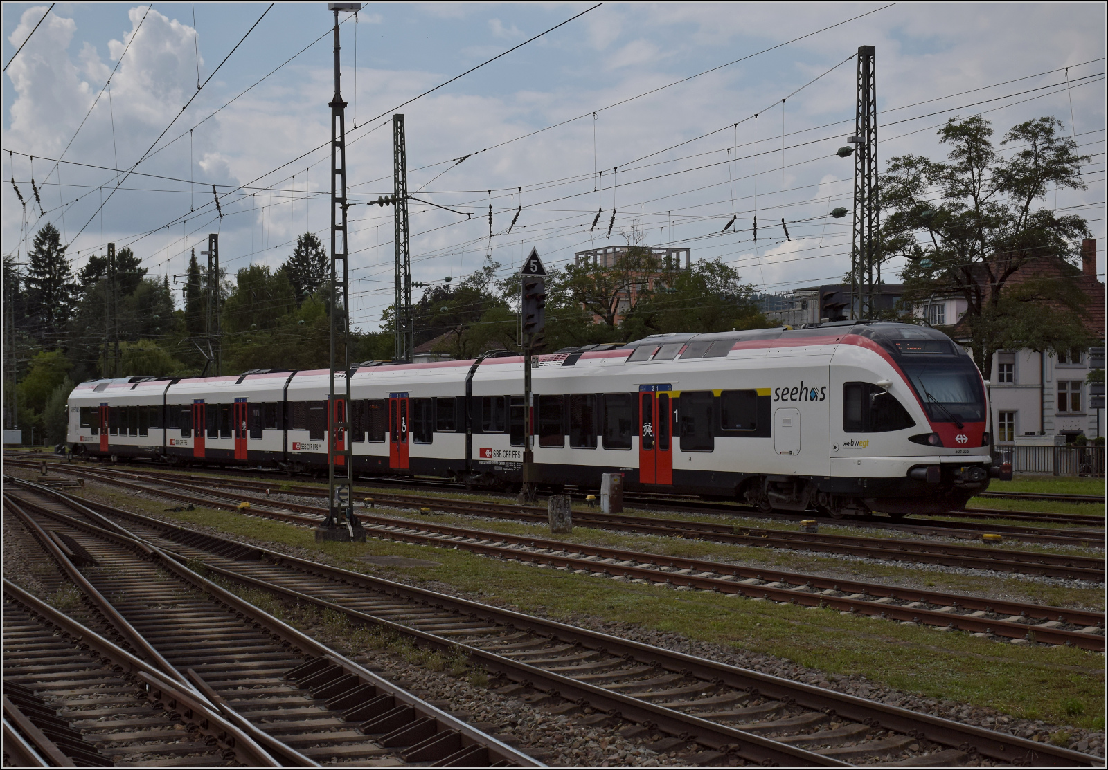Der in Singen gefangene RABe 521 205 auf dem Weg nach Engen. August 2025.